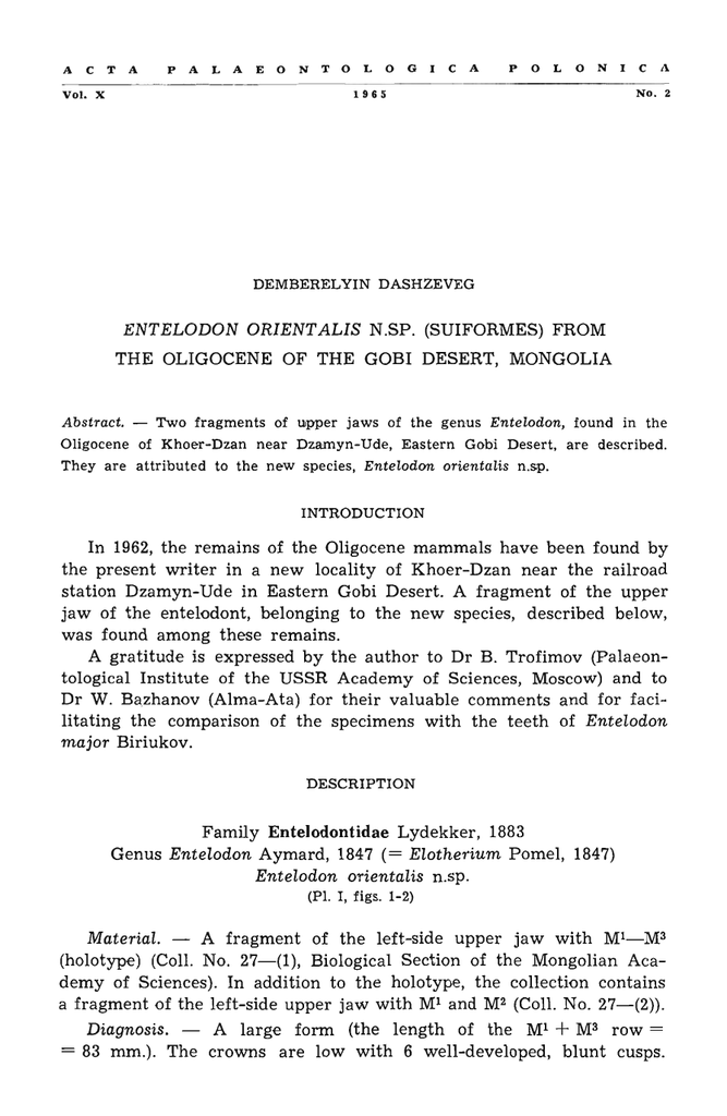 BJRIUKOV, M. D. 1961. Entelodont (Entelodontidae) iz sredneoligocenovych otlozenij verchoviev Zilansina. - Mat. is t or . fauny i flory Kazachstana, 3, 11-20,