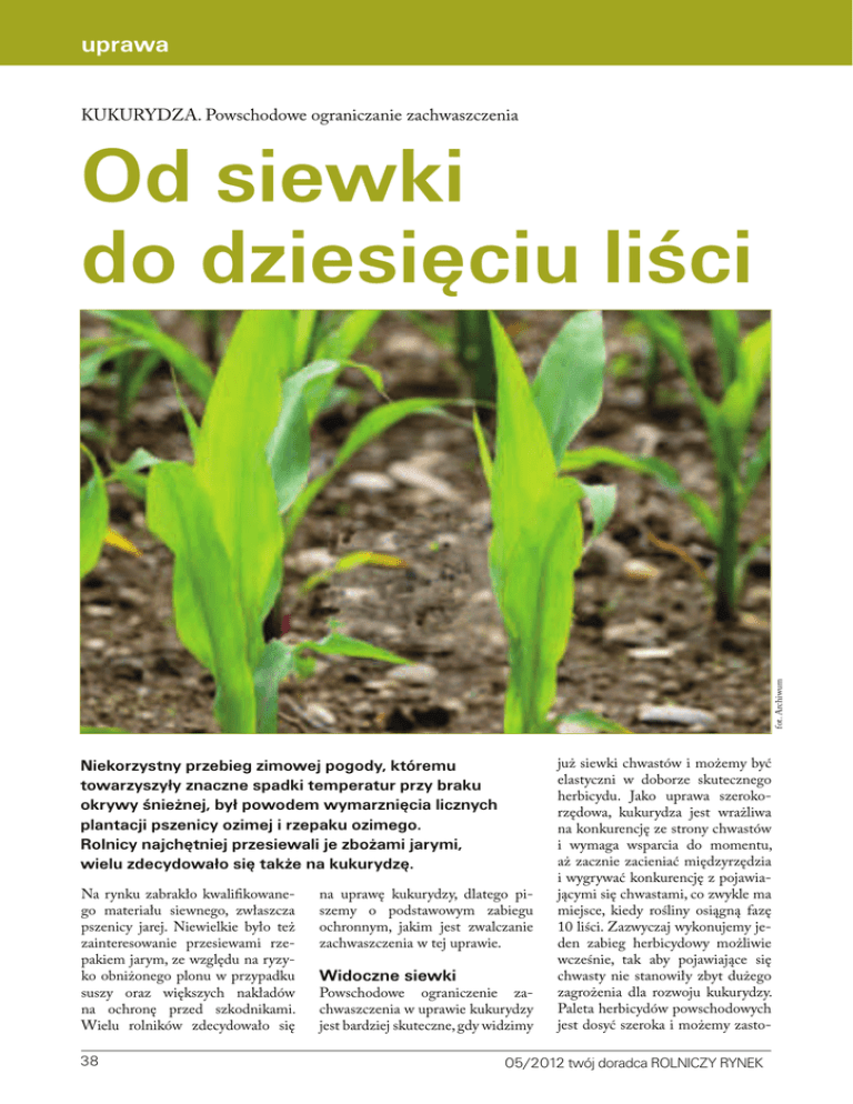 herbicydu. Jako uprawa szerokorzędowa, kukurydza jest wrażliwa