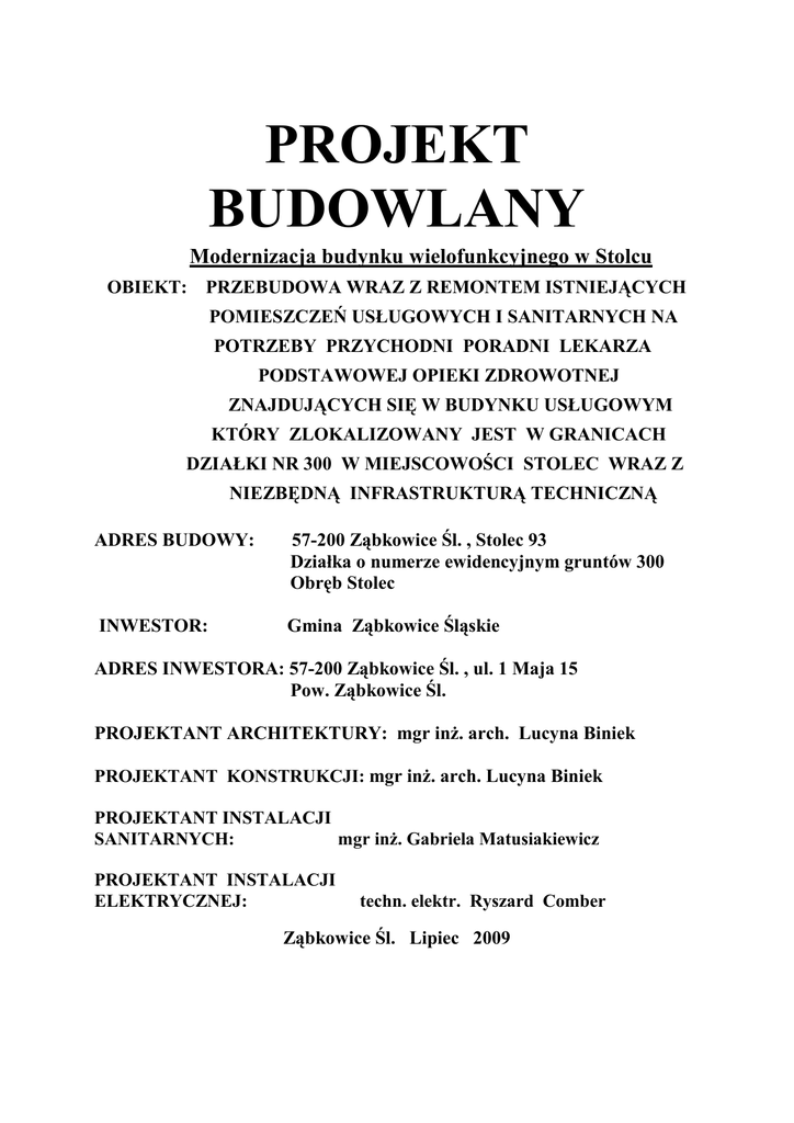 projekt budowlany - Ząbkowice Śląskie