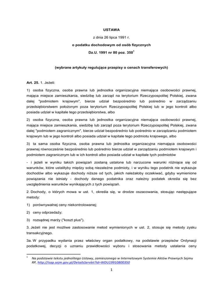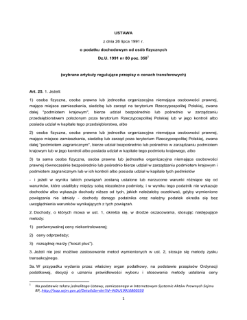 (wybrane artykuły regulujące przepisy o cenach transferowych)