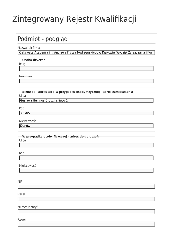 Wydruk - Zintegrowany Rejestr Kwalifikacji