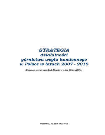 STRATEGIA działalności górnictwa węgla kamiennego w