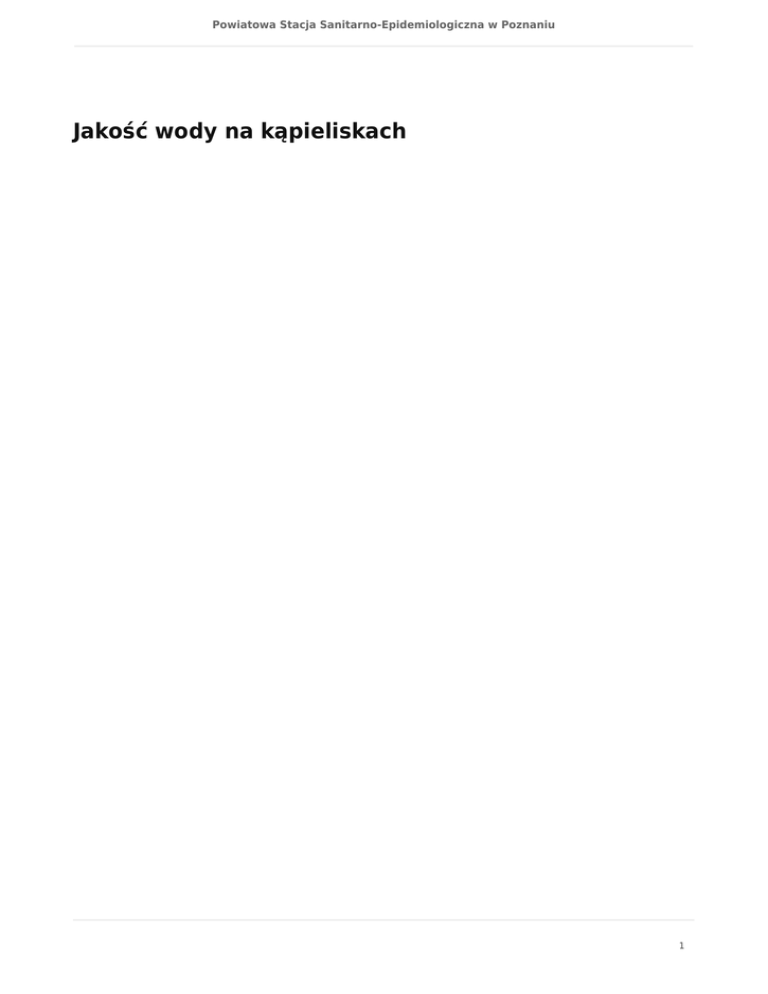 Powiatowa Stacja Sanitarno-Epidemiologiczna w Poznaniu Jakość wody na kąpieliskach 1
