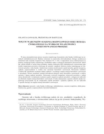 wpływ warunków suszenia rozpyłowego soku buraka ćwikłowego