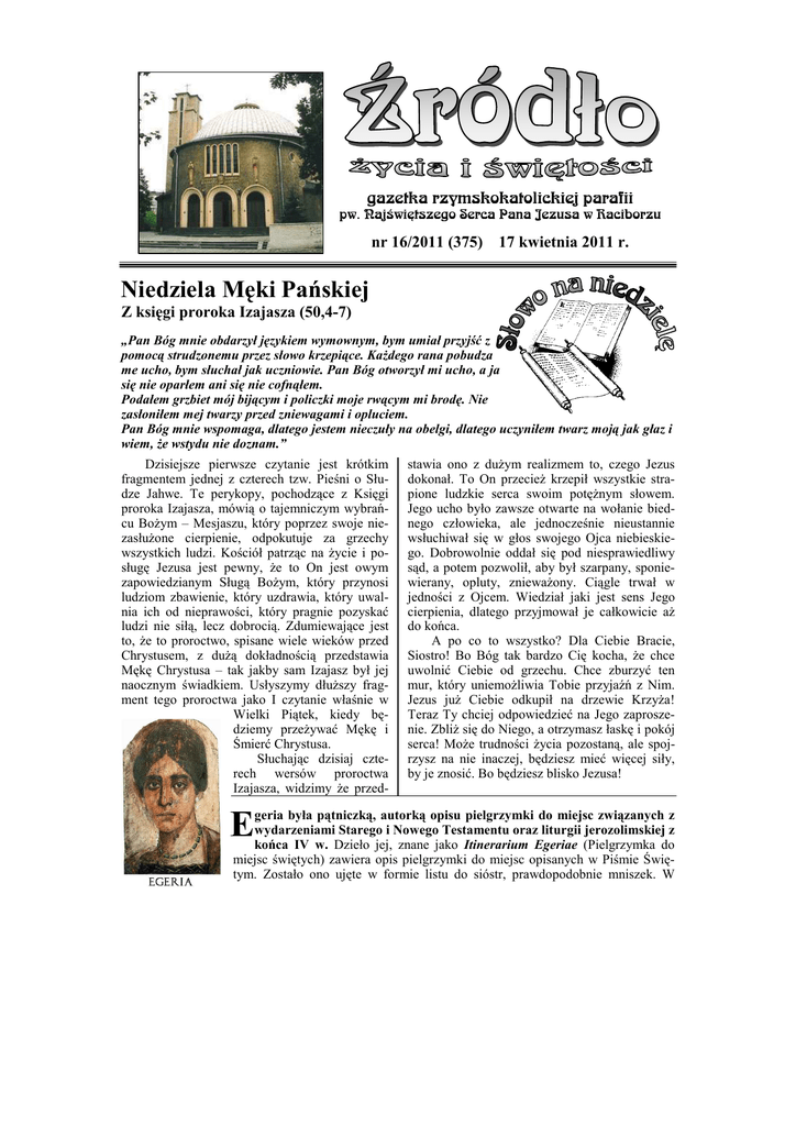 "Źródło" 17.04.2011 (nr 375) - Strona Parafii NSPJ w Raciborzu