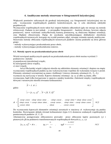 5. Analityczne metody stosowane w fotogrametrii inżynieryjnej