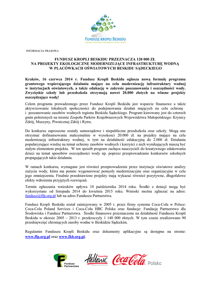 Informacja prasowa Fundusz Kropli Beskidu