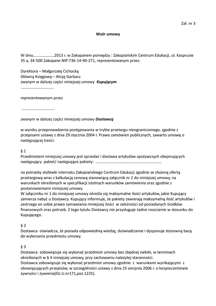 Załącznik 3 Wzór umowy - Zakopiańskie Centrum Edukacji