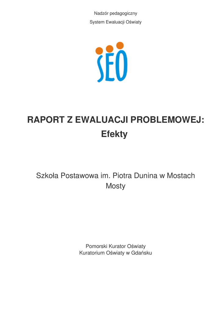 Prezentowany raport jest rezultatem ewaluacji zewnętrznej przeprowadzonej w szkole (lub placówce) przez