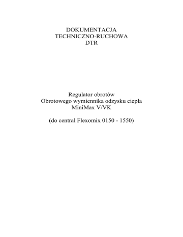 DOKUMENTACJA TECHNICZNO-RUCHOWA DTR Regulator obrotów Obrotowego wymiennika odzysku ciepła MiniMax V/VK (do central Flexomix 0150 - 1550) Spis treści Strona Połączenie kabli Opis funkcji Dane techniczne 2 Ustawienia 3 Regulacja Ustawienie przełączników DIP 4 Sprawdź przed załączeniem napięcia Procedura startowa 5 Wskazania diod Wskazania alarmu Zabezpieczenia i funkcje pracy 6 Usuwanie błędów 7 1 Połączenie kabli Listwa sterująca Wysoka prędkość i niska prędkość Sygnał wejściowy Napięcie / prąd Potencjometr 140Ω-10kΩ Start Wejście Termokontakt Częstotliwość Wejście Czujnik obrotów Reset Wyjście Wyjście Przekaźnik Przekaźnik alarmu sterujący (Max 8A/250V AC) Zasilanie 0 – 10V DC jest proporcjonalny do 0 – 100 Hz Wejście 1 x 230 V Wyjście 3 x 230 V Opis funkcji MiniMax (V - z obudową otwartą, IP20, VK - z obudową zamkniętą, IP54) jest nowoczesnym modulowanym wektorowo przetwornikiem częstotliwości. Zawiera wszystkie niezbędne funkcje, które są konieczne do regulacji obrotowych wymienników ciepła. Przyjmuje wszystkie typowe sygnały sterujące. Prędkość obrotowa wymiennika ciepła i jego wydajność są kontrolowane przez przetwornik częstotliwości, w ten sposób, Ŝe prędkość wirnika jest proporcjonalna do sygnału wejściowego ze sterownika. JeŜeli wartość sygnału wejściowego jest niŜsza od wartości progowej wirnik nie będzie się obracał. JeŜeli wirnik stał nieruchomo przez 30 minut, funkcja czyszcząca będzie uruchamiać wirnik przez 10 sekund na minutę. Czujnik obrotów (magnes przymocowany do wirnika i wewnętrzny nadajnik magnetyczny) wyłączy przetwornik częstotliwości i uruchomi alarm Zbyt wysokie lub zbyt niskie napięcie lub otwarty termokontakt spowoduje wyłączenie przetwornika częstotliwości i uruchomi alarm. Dane techniczne Max wielkość silnika 0,37 Max prąd wyjściowy 2,2 Max przeciąŜenie 2min/30min 3,5 Napięcie zasilania 1x230, +6, -10% Częstotliwość zasilania 50-60 Napięcie wyjściowe 3x 0-230 Częstotliwość wyjściowa 1 - 100 Min częstotliwość 1 – 20 Max częstotliwość 40 - 100 kW A A V Hz V Hz Hz Hz Czas przyspieszania 1 - 30 s Czas zwalniania 1 – 30 s Temp. otoczenia 0 - 45 °C (bez wykraplania wilgoci) Klasa ochrony przetwornika V: IP20 / VK: IP54 Waga V: 1,2 / VK: 1,4 kg Wymiary h x b x l V: 150 x 165 x 67 mm VK: 195 x 165 x 67 mm 2 Ustawienia Wysoka prędkość (A1-A2) Odzysk chłodu. Daje max moŜliwą prędkość jeŜeli start (5-6) jest zwarty. Niska prędkość (A2-A3) Odszranianie. Daje min moŜliwą prędkość jeŜeli start (5-6) jest zwarty. Sygnał wejściowy (1-3) Odchyłka regulacji z układu nadrzędnego. (0-5V, 0-10V, 1-5V, 2-10V, 5-10V, 10-0V, 10-2V, 10-5V, 0-20V obcięta faza, 0-20mA, 4-20mA). Patrz ustawienie przełączników DIP, strona 4. Pomiar częstotliwości (3-4) 0-10V DC odpowiada 0-100Hz, np. 0,5V=5Hz, 5V=50Hz. Prędkość wirnika jest proporcjonalna do częstotliwości. Start (5-6) Musi być zwarty jeŜeli zewnętrzny start nie jest uŜywany. Termokontakt (7-8) Musi być zwarty jeŜeli termokontakt w silniku nie jest uŜywany. Czujnik obrotów (9-10) Biały przewód prowadzić do zacisku 9, brązowy do zacisku 10. Magnes powinien być zamontowany z biegunem południowym skierowanym naprzeciw nadajnikowi. Max odległość 15mm. Przetwornik przechodzi w stan awarii, jeŜeli nie odbiera sygnałów co 5 minut. Funkcja moŜe zostać wyłączona. Zobacz ustawienia przełączników DIP, strona 4. Reset (11-12) Zdalne kasowanie alarmu. Przetwornik resetuje się automatycznie kiedy zostaje wyłączone zasilanie. Przekaźnik alarmu (13-14-15) Zwarty między 14-15 w przypadku alarmu lub wyłączenia zasilania. Przekaźnik sterujący (16-17) Zwarty między 16-17 kiedy funkcja start jest włączona. Max 8A / 250V AC. Ręczny test Przycisk wysokiej prędkości Silnik obraca się z maksymalną moŜliwą prędkością. Przycisk niskiej prędkości Silnik obraca się z minimalną moŜliwą prędkością. 3 Regulacja Boost Dostosowuje moment obrotowy. Nastawa fabryczna. MoŜna ją zwiększyć w razie konieczności, ale wzrośnie równieŜ temperatura silnika przy niskiej prędkości. Acc Czas przyspieszania (0-30s). Ustawiony fabrycznie na wielkość maksymalną. Nie wymaga zmian. Ret Czas opóźnienia (0-30s). Ustawiony fabrycznie na wielkość maksymalną. Nie wymaga zmian. Wartość progowa Przetwornik nie uruchomi się zanim sygnał sterujący nie przekroczy wartości progowej, którą moŜna ustawić w zakresie między 0 i 20% maksymalnego sygnału wejściowego. Na przykład: Przy wybranym sygnale wejściowym 0-10V wartość progowa jest regulowana między 0-2V. Min obroty Min prędkość (1-20Hz). Nastawiona fabrycznie do 4 Hz. Max obroty Max prędkość (40-100Hz). Nastawiona fabrycznie do 50 Hz. Ustawienie przełączników DIP 0 = Off 1 = On x = Nie biorą udziału Potencjometr 0 0 0 0 0 0 x x 0-5 V 0 0 0 0 0 0 x x Przełącznik DIP 0-10 V 1 0 0 0 0 0 x x ZAŁ 0-20 V 0 1 0 0 0 0 x x 1-5 V 0 0 1 0 0 0 x x 2-10 V 1 0 1 0 0 0 x x 5-10 V 1 0 0 1 0 0 x x 10-0 V 1 0 0 0 0 1 x x 10-2 V 1 0 1 0 0 1 x x 10-5 V 1 0 0 1 0 1 x x 0-20 mA 0 0 0 0 1 0 x x 4-20 mA 0 0 1 0 1 0 x x Funkcja czyszcz. wył. x x x x x x 0 x Funkcja czyszcz. zał. x x x x x x 1 x Czujnik obrotów wył. x x x x x x x 0 Czujnik obrotów zał. x x x x x x x 1 1..........8 WYŁ. 4 Sprawdź przed załączeniem napięcia Sprawdź czy Silnik jest podłączony na 3 x 230V. JeŜeli wyłącznik bezpieczeństwa jest włączony między silnik a przetwornik, termokontakt silnika musi być podłączony przez styk pomocniczy w wyłączniku bezpieczeństwa. Sprawdź czy Przetwornik jest podłączony zgodnie z wytycznymi na stronie 2-3. Zasilanie 230V +6-10%. Sprawdź czy Przełącznik DIP jest ustawiony na właściwą szybkość sygnału sterującego. Patrz ustawienia przełącznika DIP na stronie 4. Sprawdź czy Czujnik obrotów i funkcja czyszcząca są włączone. Patrz ustawienia przełącznika DI