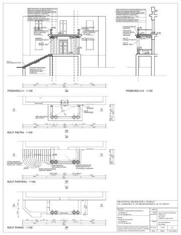 płytki ceramiczne ze spoiną elastyczną 1cm elastyczna zaprawa klejowa 0.5cm elastyczna powłoka uszczelniająca 0,5cm warstwa spadkowa z gotowych mas mrozoodpornych 14 ÷ 11cm żelbetowa płyta balkonowa pokryta warstwą szczepną 10cm szczelna masa tynkarska 0.5cm murowany element balustrady odtworzenie gzymsów tarasu z gotowych elementów + płytki ceramiczne ze spoiną elastyczną 1cm elastyczna zaprawa klejowa 0.5cm elastyczna powłoka uszczelniająca 0,5cm warstwa spadkowa z gotowych mas mrozoodpornych 14 ÷ 11cm żelbetowa płyta balkonowa pokryta warstwą szczepną 10cm szczelna masa tynkarska 0.5cm + 3,51 + poz.3.3 podciąg 57 x26 cm + murowany element balustrady murowany element balustrady odtworzenie gzymsów tarasu z gotowych elementów 4,46 3,10 + odtworzenie gzymsów tarasu z gotowych elementów 4,46 + + 3,51 + 3,22 poz.3.3 podciąg 57 x26 cm poz.3.3 podciąg 57 x26 cm + 3,10 3,58 + 3,52 3,25 poz.2.2 płyta gr. 10cm poz.2.2 płyta gr. 10cm + + - + 0,78 0,78 + - 0,00 0,00 poz.1.0 płyta biegowa gr. 18cm posadzka dekoracyjna lastrico gr 1,5 cm projektowana płyta żelbetowa 482,1 395,8 299,4 60 462,6 408,4 60 560 1364,1 II PRZEKRÓJ I-I 1:100 PRZEKRÓJ II-II 1:100 432 30 0,5 % rura spustowa I % wpust odwadniający 0,5 I 0,5 95 % 37,9 65,4 płytki ceramiczne pow. 9.50 m˛ 408,2 482,1 408,2 115 222,5 287,9 30 40 0,5% 37,9 116 60 248 299,4 567,8 37,9 128 60 388,1 462,6 388,1 II RZUT PIĘTRA 1:100 0,00 I 66,8 36,8 41 + - 103 222,5 259,3 198,5 48,5 II 14x16.7x32.2 I schody zewnętrzne posadzka dekoracyjna lastrico pow. 10.68 m˛ - posadzka dekoracyjna lastrico pow. 9.71 m˛ na istniejącym podkładzie część naziemną wymurować od nowa część naziemną ślimaka wykonać z betonu 2,34 10 40 482,1 395,8 40 20 60 259,4 299,4 40 40 20 10 462,6 408,4 60 560 1364,1 II RZUT PARTERU 1:100 222,5 259,3 150 II PRACOWNIA PROJEKTOWA "INGRAF" UL. ŁOKIETKA 5/1 85-200 BYDGOSZCZ tel. 52 3226727 I Inwestor Wspólnota Mieszkaniowa Rejtana 8 ul. Rejtana 8 85-032 Bydgoszcz 152,5 I 36,8 156,8 98,7 231,4 60 97,4 299,4 564,3 1364,1 II RZUT PIWNIC 1:100 144,6 482,1 395,8 232,4 60 404,1 462,6 404,1 Obiekt: Budynek mieszkalny ul. Rejtana 8 85-032 Bydgoszcz ARCH. Autor projektu mgr.inż.arch.A.PawlickaZabojszcz Nr ewid. GPKG-I-7342-43/95 Oprac. Temat: Projekt remontu ścian zewnętrznych, 07.2016 remontu odtworzeniowego tarasów i schodów zewnętrznych, remontu pokrycia dachu Data inż.arch.Mateusz Kowalski 1:100 Skala A-1 Nr rysunku
