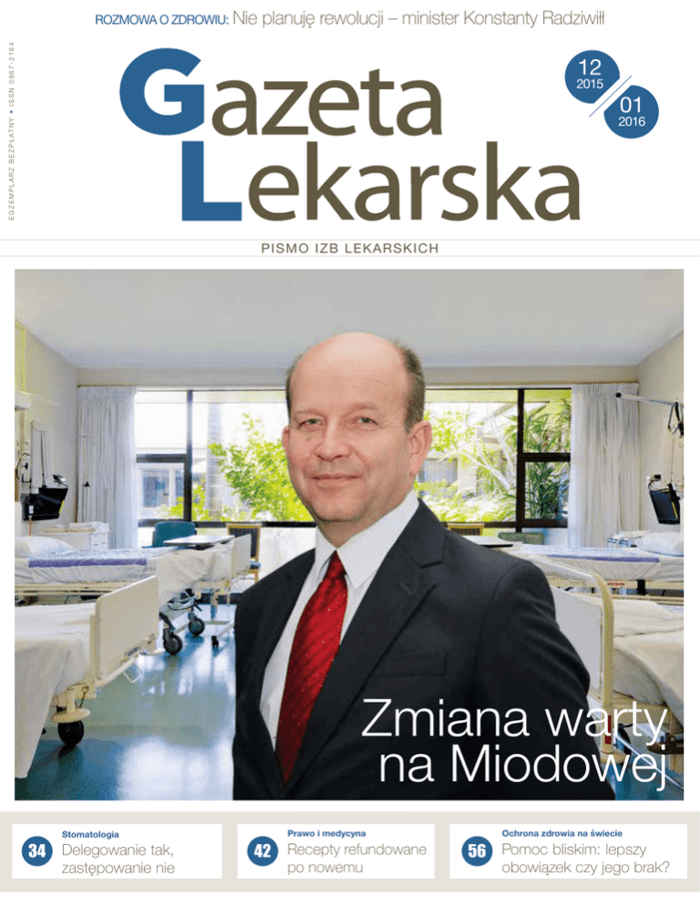 planuję rewolucji – minister Konstanty Radziwiłł E G Z E M P L A R Z B E Z P Ł AT N Y • I S S N 0 8 6 7 - 2 1 6 4 ROZMOWA O ZDROWIU: Nie 12 2015 01 2016 P I S M O I Z B L E K A RS K I CH Zmiana warty na Miodowej Stomatologia 34 Delegowanie tak, zastępowanie nie Prawo i medycyna 42 Recepty refundowane po nowemu Ochrona zdrowia na świecie 56 Pomoc bliskim: lepszy obowiązek czy jego brak? 12 2015 Spis treści 17 23 44 50 01 2016 4 aw ie oa i Kolega Minister 6 Pierw zym o em aman iewicz O etyce zawodowej i nie tylko 8 rinin 12 O erwac e ad re Daję, bo nie moje 14 ema mie i ca Zmiana warty na Miodowej 17 ozmowa o zdrowi Nie planuję rewolucji 22 a i w ro ie e a Stanowiska ERO-FDI 2015 23 ozmowa o zdrowi Nie ma przyszłości bez przeszłości 26 amorz d OC w składce 30 amorz d Samorząd medialnie 31 i do reda c i Brońcie nas 32 P n widzenia a my a Magiczne hamowanie 34 oma o o ia Delegowanie tak, zastępowanie nie – możliwości i kompetencje higienistki stomatologicznej 36 oma o o ia Takiego kongresu jeszcze nie było 37 ode y i e ar ie Przypadki anestezjologiczne z art. 1 KEL 38 i e yn 40 Prawo i medycyna Wymogi w sprawie RTG łagodniejsze 42 Prawo i medycyna Recepty refundowane po nowemu 44 e ar ie owarzy wa na owe Neurologia to dziedzina wielodyscyplinarna 46 e or a Mała manufaktura 49 Pra y a e ar a Czas pracy lekarzy – rzeczywistość i oczekiwania 50 Pra y a e ar a Zawód wysokiego ryzyka 52 Pra y a e ar a Medycyna personalizowana 54 Pra y a e ar a Dlaczego profilaktyka to inwestycja? 56 Ochrona zdrowia na świecie Pomoc bliskim: lepszy obowiązek czy jego brak? 58 nde orzyści Fajna praca 60 dw ch ron ceny Pie ra Damy, Huzary, Krakowiacy i Górale ecenz a W kolebce ludzkości 61 dw ch ron ceny ndr Dawka uderzeniowa 62 d ma ar i Czarno na białym 64 ra Niemalże doskonale 65 ra 66 or 67 O o zenia 72 om ni a y 73 i ryza anec i Lista spraw grudniowych 74 o a e ar a Ważne Jakie są obowiązki z tytułu wykonywania zawodu lekarza i lekarza dentysty? Jaka kara grozi za wykonanie zabiegu bez świadomej zgody pacjenta? Odpowiedzi na te i wiele innych pytań można znaleźć w informatorze prawnym, który powstał z inicjatywy OIL w Warszawie. Do pobrania w dziale Prawo na www.gazetalekarska.pl. Kursy CMKP w ramach nowego projektu organizuje kursy dofinansowane ze środków unijnych dla lekarzy specjalizujących się w trybie modułowym w wybranych dziedzinach medycyny. Więcej na www.cmkp.edu.pl. Do 31.03 Należy przesyłać prace na ogólnopolski konkurs poetycki „Leczymy Słowem”, który dla lekarzy piszących wiersze z okazji 150. rocznicy powstania Towarzystwa Lekarskiego Krakowskiego ogłosiła Unia Polskich Pisarzy Lekarzy. Więcej na www.gazetalekarska.pl. 3 Na wstępie Kolega Minister P A P Redaktor naczelny „GL” P W odrodzonym samorządzie, w początkach jego działalności, określenie to było bardzo popularne, można powiedzieć, że przeżywało renesans. Obecnie często zastępowane jest formą bardziej bezpośrednią, czyli mówieniem sobie po imieniu. To z jednej stronu znak czasu, z drugiej wpływ zachodnich wzorców. Nie oceniam tej zmiany, przyjmuję ją do wiadomości i sam stosuję. teraz do rzeczy. Nowym ministrem zdrowia został Kolega Konstanty Radziwiłł. Z jego osobą wiązane są liczne nadzieje. Także lekarskie. Choć kilkakrotnie podkreślał, że minister zdrowia ma przede wszystkim dbać o pacjentów. Swoją działalność, wcześniejszą samorządową, a teraz państwową, określa jako służbę publiczną. Woli także wobec działalności medycznej używać określenia „służba zdrowia”, a nie ochrona zdrowia czy opieka zdrowotna. „Gazeta Lekarska” była pierwszym medium, któremu Pan Minister udzielił wywiadu po objęciu urzędu. Zapraszam do lektury na str. . Podczas posiedzenia Naczelnej Rady Lekarskiej w dniu grudnia Pan Minister wystąpił w podwójnej roli: jako gość samorządu lekarskiego i jako członek NRL. Z funkcji sekretarza NRL zrezygnował po objęciu państwowego urzędu. W kuluarach tego spotkania słyszałem opinie, że obiektywnie patrząc, spośród wielu ministrów zdrowia, z którymi spotykano się na Sobieskiego , dr Radziwiłł zrobił najlepsze wrażenie, szczególnie co do swojej znajomości problemów ochrony zdrowia, także widzianej od strony lekarza i działacza samorządu zawodowego. Zresztą kilkakrotnie podkreślał, że swoją wiedzę zawdzięcza pracy w izbie lekarskiej. Może ktoś zapytać, na ile obiektywne mogą być opinie osób, które znają go od wielu lat, współpracują z nim i darzą sympatią? Myślę, że przynajmniej część moich rozmówców to osoby, które w tej sytuacji starały się zachować obiektywne i krytyczne spojrzenie. Nie zmienia to faktu, że atmosfera spotkania była entuzjastyczna. Wierzymy w siłę naszego Kolegi i liczymy na jego silną pozycję wobec ministra finansów. Składamy gratulacje i życzymy powodzenia na tym trudnym stanowisku – z pożytkiem dla lekarzy i pacjentów. Nie mogę zostawić bez komentarza sprawy Państwowego gzaminu Specjalizacyjnego z anestezjologii i intensywnej terapii w sesji jesiennej r. gzamin pisemny listopada zdało zaledwie osób, czyli proc. zdających To swoisty niechlubny rekord. Według zdających egzamin był źle przygotowany, pytania niejednoznaczne w swojej treści, odpowiedzi przedstawione w zawiłych kombinacjach. Wątpliwości budziły długie pytania dotyczące regulacji ustawowych oraz pytania ze statystyki. Osoby, które egzamin zaliczyły, otrzymały jedynie oceny dostateczne. Sprawa z pewnością wymaga starannej analizy i wyciągnięcia wniosków na przyszłość. FOTO: Adobe Stock Ryszard oa i P Migawka Jest tyle sił w narodzie, jest tyle mnogo ludzi; niechże w nie duch twój wstąpi i śpiące niech pobudzi. ragment kolędy z „Kordiana” w Teatrze Narodowym, o e i m eda cy ne i eda c a aze y e ar ie wraz ze w racowni ami i a orami ada e arzom i e arzom en y om świ eczne i noworoczne yczenia 