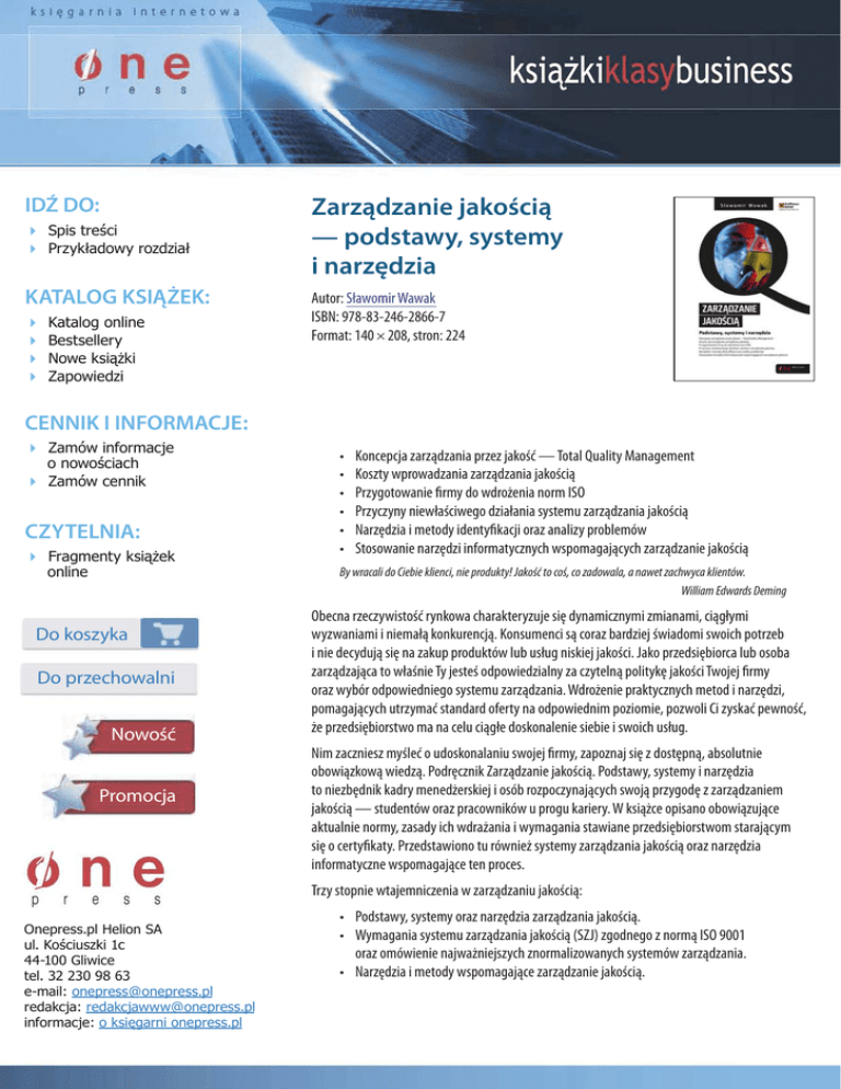 Zarządzanie jakością - podstawy, systemy i narzędzia