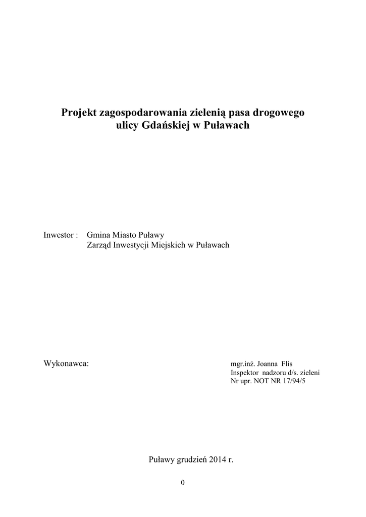 projekt zagospodarowania zielenią pasa drogowego ul. Gdańskiej.