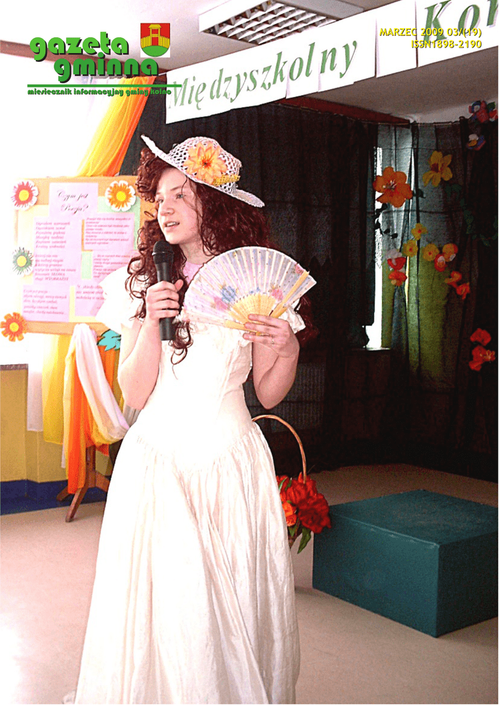 g a ze t a g m in n a m ie s ie c z n ik in f o r m a c y j n y g m in y k o l n o M A R ZE C 2 0 0 9 0 3 / ( 1 9 ) I SSN 1 8 9 8 -2 1 9 0 g a z e t a g m in n a n r 0 3 ( 1 9 ) m a r z e c 2 0 0 9 II Mistrzostwa Województwa Podlaskiego w tenisie stołowym dla uczestników Warsztatów Terapii Zajęciowej 22 kwietnia w Sali gimnastycznej Szkoły Podstawowej nr 2 w Kolnie odbyły się II Mistrzostwa Województwa Podlaskiego w Tenisie Stołowym dla uczestników Warsztatów Terapii Zajęciowej. Organizatorem zawodów było powiatowe Zrzeszenie LZS w Kolnie oraz WTZ przy PZ LZS w Kolnie. W zawodach brało udział 75 zawodników z WTZ-ów z województw: podlaskiego, lubelskiego i warmińsko-mazurskiego. Mistrzostwa rozgrywane były w kategoriach: kobiety, mężczyźni, wózki. Grano do dwóch wygranych setów. Sponsorami mistrzostw były Zarząd Województwa Podlaskiego i Spółdzielnia Mleczarska „Mlekpol” w Grajewie. Zwycięzcy w poszczególnych kategoriach: Kobiety: 1.Szotko Anna - WTZ Ogrodniczki Wózki: 1.Matusiewicz Piotr - WTZ Czarna Mężczyźni: 1.Koleśnik Sławomir - WTZ Czarna 2.Maj Olimpia - WTZ Puławy Białostocka Białostocka 3.Gil Anna - WTZ Ryn 2.Przekopki Zbigniew - WTZ Sejny 2.Mierzejewski Jacek - WTZ Kolno 4.Miller Agnieszka - WTZ Marianowo 3.Kozakiewicz Krzysztof - WTZ Sejny 3.Nieścier Michał - WTZ Szczytno 5.Ciesielska Renata - WTZ Puławy 4.Jatkowski Robert - WTZ Sejny 4.Łozowski Andrzej - WTZ Szczytno 6.Ponichtera Katarzyna - WTZ Marianowo 5.Sobiech Arkadiusz - WTZ Stoczek 5.Piaszczyk Michał - WTZ Szczytno Łukowski 6.Łagasiuk Adam - WTZ Mońki 6.Frankowska Barbara - WTZ Ogrodniczki Piszesz wiersze, opowiadania, rysujesz karykatury, rysunki satyryczne ni e c ho w a j s w o j e j t w ó r c z o ś c i d o s z u f l a d y - s k o nt a k t u j s i ę z r e d a k c j ą . g a z e t a g m in n a n r 0 3 ( 1 9 ) m a r z e c 2 0 0 9 Jesteśmy coraz bardziej samowystarczalni R o be r t K o t o w s k i W marcu w drodze przetargu nieograniczonego Gmina Kolno zakupiła nową koparko-ładowarkę marki JCB 3CXS z osprzętem. Dostawcą nowego sprzętu została firma INTERHANDLER Sp. z o.o. z Torunia. Nowo zakupiony sprzęt zasilił park maszynowy Referatu Gospodarki Komunalnej Urzędu Gminy Kolno, gdzie wraz z pozostałym sprzętem będzie wykorzystywany przy usuwaniu awarii sieci wodociągowej, remontów oraz przy pracach w trakcie bieżącego utrzymania dróg. Zakup w całośći sfinansowano z budżetu Gminy Kolno. Operatorem nowego nabytku został Pan Jerzy Murawski - pracownik referatu Gospodarki Komunalnej. Na zdjęciu: Nowy nabytek w pełnej krasie, jeszcze przed pracami ziemnymi. P r ą d z w i a t r u - b y ć m o ż e i u n a s ... Na ostatniej sesji Rady Gminy Kolno zebrani mieli okazję obejrzeć prezentację firmy Contino Wind Group, która w swych planach ma budowę farmy wiatrowej na terenie między Borkowem a Kolnem. Docelowo miałoby tam stanąć 24 wiatraki o łącznej mocy 48 MW. W chwili obecnej powodzenie inwestycji zależeć będzie od ilości chętnych , którzy będą skłonni oddać pod wiatraki ziemię w dzierżawę za nie małą w końcu kwotę 6000 euro rocznie. Sprawozdanie z działalności Wójta Gminy Kolno za okres od 31 marca do 30 kwietnia 2009 r. W okresie od ostatniej sesji wydałem 5 zarządzeń które dotyczyły: - Sposobu wykonania uchwał rady gminy podjętych na XXIV sesji - Powołanie komisji przetargowej - Nabycia nieruchomości nie zabudowanej tów wielobranżowych do przebudowy remiz wydzielonej jako droga dojazdowa do dzia- strażackich we wsiach: Lachowo, Czerwone, łek sąsiednich we wsi Zabiele Zabiele - Nabycia nieruchomości nie zabudowanej z 3. Odebrałem sieć wodociągową we wsiach: przeznaczeniem na poszerzenie istniejącej Filipki Duże i Filipki Małe. Wybudowana drogi sieć to długość 3,72 km do której podłączono - Ogłoszenia wykazu nieruchomości przezna- 27 gospodarstw domowych. Wartość inwe- czonej do oddania w najem stycji rozliczono na kwotę 157 455 zł Ponadto w okresie między sesjami: 4. Przekazałem plac pod budowę sali gimna- 1. ogłosiłem przetargi i podpisałem umowy stycznej przy Gimnazjum w Zabielu. Prace na: rozpoczną się około połowy maja. - dostawę pospółki żwirowej do żwirowania 5. Ze środków na promocje zakupiłem na- dróg miot wystawowy z barwami gminy. Można - dzierżawę części działki położonej za biblio- go będzie obejrzeć na dniach Gminy Kolno teką w Czerwonem w dniu 24 maja w Borkowie. 2. Ogłosiłem przetarg na wykonanie projek- g a z e t a g m in n a n r 0 3 ( 1 9 ) m a r z e c 2 0 0 9 D z i a ł a n i a u k i e ru n k o w a n e n a ro z w ó j d z i e c i z a w s z e w a ż n e i p o t rz e b n e Józef Bogdan Wiśniewski Dyrektor ZOPO w Kolnie która przedstawiła znaczenie edukacji małych dzieci. Jej merytoryczne argumenty były przekonujące dla uczestniczących w spotkaniu radnych, sołtysów i pracowników Gminy Kolno. Już od grudnia 2008 r. Stowarzyszenie Pedagogów i Animatorów KLANZA Oddział Białostocki realizuje w naszej gminie Projekt „Z POLA DO PRZEDSZKOLA – kampania promocyjna na rzecz edukacji małych dzieci” współfinansowany przez Europejski Fundusz Społeczny w ramach Działania 9.1.1 Zmniejszanie nierówności w stopniu upowszechniania edukacji przedszkolnej. Szczęśliwymi wybrankami działań KLANZY są mali i dorośli mieszkańcy Czerwonego i okolic. Pierwsze spotkanie informacyjne odbyło się 19 grudnia 2008 roku w sa- li konferencyjnej Zespołu Obsługi Placówek Oświatowych w Kolnie przy ul. Sienkiewicza 5. Podczas odbywającej się Sesji Rady Gminy wystąpiła Pani Małgorzata Borowska Prezes KLANZY, Następne spotkania informacyjne odbyły się 21 stycznia 2009 r. w Szkole Podstawowej im. Marszalka Józefa Piłsudskiego w Czerwonem. Uczestniczyli w nich rodzice dzieci 3-5 letnich z obwodu szkoły oraz nauczyciele oddziałów przedszkolnych i kształcenia zintegrowanego ze wszystkich szkół Gminy Kolno. Pani Elżbiet