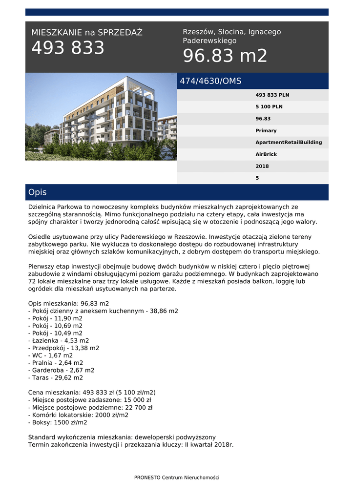 MIESZKANIE na SPRZEDAŻ 493 833 Rzeszów, Słocina, Ignacego Paderewskiego 96.83 m2 474/4630/OMS 493 833 PLN 5 100 PLN 96.83 Primary ApartmentRetailBuilding AirBrick 2018 5 Opis Dzielnica Parkowa to nowoczesny kompleks budynków mieszkalnych zaprojektowanych ze szczególną starannością. Mimo funkcjonalnego podziału na cztery etapy, cała inwestycja ma spójny charakter i tworzy jednorodną całość wpisującą się w otoczenie i podnoszącą jego walory. Osiedle usytuowane przy ulicy Paderewskiego w Rzeszowie. Inwestycje otaczają zielone tereny zabytkowego parku. Nie wyklucza to doskonałego dostępu do rozbudowanej infrastruktury miejskiej oraz głównych szlaków komunikacyjnych, z dobrym dostępem do transportu miejskiego. Pierwszy etap inwestycji obejmuje budowę dwóch budynków w niskiej cztero i pięcio piętrowej zabudowie z windami obsługującymi poziom garażu podziemnego. W budynkach zaprojektowano 72 lokale mieszkalne oraz trzy lokale usługowe. Każde z mieszkań posiada balkon, loggię lub ogródek dla mieszkań usytuowanych na parterze. Opis mieszkania: 96,83 m2 - Pokój dzienny z aneksem kuchennym - 38,86 m2 - Pokój - 11,90 m2 - Pokój - 10,69 m2 - Pokój - 10,49 m2 - Łazienka - 4,53 m2 - Przedpokój - 13,38 m2 - WC - 1,67 m2 - Pralnia - 2,64 m2 - Garderoba - 2,67 m2 - Taras - 29,62 m2 Cena mieszkania: 493 833 zł (5 100 zł/m2) - Miejsce postojowe zadaszone: 15 000 zł - Miejsce postojowe podziemne: 22 700 zł - Komórki lokatorskie: 2000 zł/m2 - Boksy: 1500 zł/m2 Standard wykończenia mieszkania: deweloperski podwyższony Termin zakończenia inwestycji i przekazania kluczy: II kwartał 2018r. PRONESTO Centrum Nieruchomości -------------------Zakup mieszkania na rynku pierwotnym zwolniony jest z opłaty podatku PCC. Kupujący otrzymuje od dewelopera fakturę VAT na zakupiony lokal a wraz z nią gwarancję na lokal mieszkalny. -------------------Doradztwo kredytowe: Każdy klient zainteresowany zakupem nieruchomości może liczyć bezpłatne na nasz niezależny dział doradztwa Kredytowego, który znajdzie optymalne rozwiązanie finansowe dedykowane specjalnie dla Ciebie. Pomożemy Ci: - Policzyć i określić zdolność kredytową - Dopasować najkorzystniejszy kredyt lub pożyczkę spośród najlepszych ofert bankowych - Wynegocjować niższą marże a także brak prowizji - Skompletować i uzupełnić wymagane dokumenty - Sfinalizować podpisanie umowy kredytowej i wypłatę kredytu Korzystając z darmowych usług naszych doradców oszczędzasz nie tylko czas ale także pieniądze. Już teraz umów się na spotkanie z naszym doradcą i skorzystaj z oferty jednego z ponad 27 dostępnych banków. Opiekunowie inwestycji: Łukasz Kaszuba (tel. 790-407-003) e-mail: [email protected] Filip Szczeklik (tel. 601-470-565) e-mail: [email protected] Wiktor Żyga (tel. 726-061-330) e-mail: [email protected] PRONESTO Centrum Nieruchomości Rzeszów, ul. Hetmańska 4/7 (II Piętro) Copyright © by PRONESTO S.C., 2015 Wszelkie prawa zastrzeżone. Kopiowanie, rozpowszechnianie oraz korzystanie z niniejszych materiałów w jakikolwiek inny sposób wykraczający poza dozwolony użytek określony przepisami ustawy z 4 lutego 1994 r. o prawie autorskim i prawach pokrewnych (Dz. U. 1994, nr 24 poz. 83 z późn. zm.) bez pisemnej zgody PRONESTO Centrum Nieruchomości jest zabronione i może stanowić podstawę odpowiedzialności cywilnej oraz karnej. Ponadto niniejsze materiały stanowią tajemnicę przedsiębiorstwa PRONESTO S.C. w rozumieniu ustawy z dnia 16 kwietnia 1993 r. o zwalczaniu nieuczciwej konkurencji (Dz. U. z 2003 r., Nr 153, poz. 1503 z późn. zm.). Niniejsze ogłoszenie nie stanowi oferty w rozumieniu Kodeksu Cywilnego, lecz ma jedynie charakter informacyjny. Filip Szczeklik tel. +48601470565 email: [email protected] PRONESTO Centrum Nieruchomości Powered by TCPDF (www.tcpdf.org)