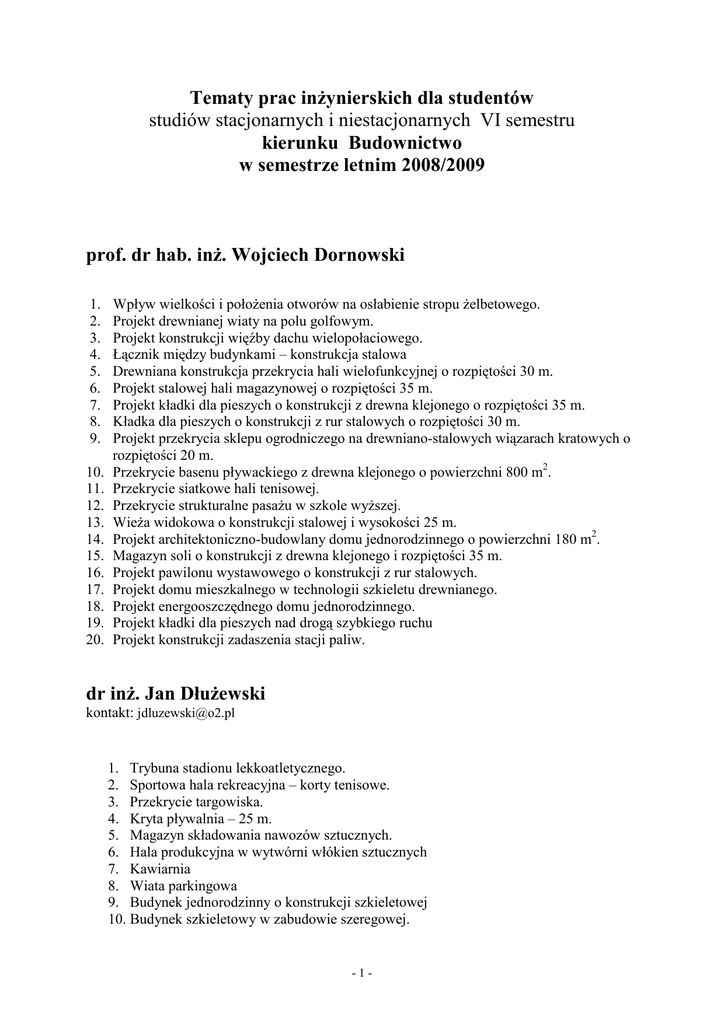 Tematy dyplomowe budownictwo 2009 r.