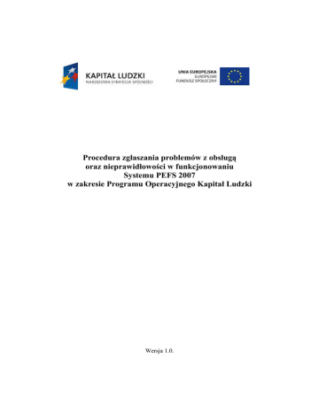 Procedura zgłaszania problemów z obsługą oraz nieprawidłowości w funkcjonowaniu Systemu PEFS 2007 w zakresie Programu Operacyjnego Kapitał Ludzki Wersja 1.0. Procedura określa sposób postępowania w przypadku napotkania na nieprawidłowe funkcjonowanie Baz lokalnych PEFS 2007 oraz Formularza PEFS 2007 w związku z obsługą systemu PEFS 2007 przez uŜytkowników. Zgłoszenia mogą obejmować kwestie techniczne, w tym m.in.: - problemy z importem plików .xml z GWA, - problemy z importem uczestników projektów z Formularzy PEFS 2007, - niestabilność systemu PEFS 2007, - nieoczekiwane komunikaty w trakcie pracy z Formularzem PEFS 2007 i/lub Bazą PEFS 2007, - nieprawidłowości w funkcjonowaniu systemu PEFS 2007, - problemy z instalacją i administrowaniem systemem PEFS 2007. Plan działań: Procedura zgłaszania problemów z funkcjonowaniem systemu PEFS 2007 obejmuje następujące kroki: 1. Zgłoszenie problemu telefonicznie. NaleŜy skontaktować się z konsultantem pod nr telefonu: (22) 535 95 80 lub poprzez e-mail: [email protected] podając następujące informacje: opis problemu, nazwa instytucji, dane kontaktowe. Uwaga! Na podany adres mailowy nie wolno przesyłać Formularzy PEFS 2007 zawierających dane osobowe!!! 2. Analiza zgłoszenia przez konsultanta pod kątem zasadności przesłania Formularza PEFS 2007 zawierającego dane uczestników projektów. 3. Podanie przez konsultanta rozwiązania telefonicznie lub drogą elektroniczną na podany adres e-mail lub prośba o przekazanie zgłoszenia wraz z plikiem (Formularzem PEFS 2007) za pomocą Witryny bezpiecznej wymiany plików. 4. Zgłoszenie problemu poprzez Witrynę bezpiecznej wymiany plików: Zgłaszający wchodzi na stronę https://pefs2007.snt.pl/SecureUp/ 2 i tworzy nowe zgłoszenie podając: Imię i nazwisko Telefon Adres email Hasło Hasło uŜytkownik wybiera sam, ale musi ono spełniać warunki: • Hasło musi zawierać przynajmniej jedną duŜą literę, • Hasło musi zawierać przynajmniej jedną małą literę, • Hasło musi zawierać przynajmniej jeden znak nie będący literą (cyfra lub znak specjalny), • Hasło musi zawierać przynajmniej osiem znaków. System generuje unikatowy numer "ID zgłoszenia" np. 9f3c759f-b610-44ee-b6c3618a4fadecc9 i przenosi zgłaszającego do widoku zgłoszenia. 3 UŜytkownik powinien skopiować numer zgłoszenia i zapamiętać hasło, aby móc się do zgłoszenia ponownie zalogować i odszyfrować poprawiony plik. UŜytkownik przesyła pliki za pomocą polecenia Wyślij plik W osobnym pliku .txt lub .doc zgłaszający podaje hasła do pliku/konta administracyjnego (w przypadku Formularza PEFS 2007), jeśli plik jest nimi zabezpieczony oraz krótki opis problemu. 5. Odebranie rozwiązania i/lub naprawionego arkusza następuje poprzez zalogowanie się na nr zgłoszenia. Arkusz zwrotnie zostanie umieszczony w tym samym zgłoszeniu. Będzie dostępny do pobrania po zalogowaniu się do zgłoszenia. Pobrany plik będzie skompresowany i zabezpieczony hasłem podanym podczas rejestracji zgłoszenia. Aby wejść do zgłoszenia naleŜy ponownie wejść na Witrynę bezpiecznej wymiany plików: https://pefs2007.snt.pl/SecureUp/ 4 Wejście do zgłoszenia wymaga podania ID zgłoszenia oraz hasła podanego podczas tworzenia zgłoszenia. JeŜeli przekazany przez Witrynę bezpiecznej wymiany informacji plik został naprawiony, to pojawi się na liście wraz z poleceniem „Zaszyfruj (potem pobierz)”. 5 Aby pobrać plik naleŜy postępować zgodnie z poleceniami tzn. w pierwszym kroku naleŜy spakować i zaszyfrować plik przyciskając polecenie „Zaszyfruj (potem pobierz)”. Poprawne wykonanie tej operacji spowoduje, Ŝe zaszyfrowany plik zostanie dodany do listy plików w danym zgłoszeniu. Nazwa pliku zostanie rozszerzona o informację na temat daty i godziny zaszyfrowania. Następnie naleŜy wybrać polecenie „Pobierz zaszyfrowany”, które umoŜliwi pobranie pliku i zapisanie go w dowolnej lokalizacji na stacji roboczej. W kolejnym kroku naleŜy wypakować plik. 6 Przed wypakowaniem program poprosi o hasło do skompresowanego pliku. NaleŜy podać hasło podane w zgłoszeniu!!!. JeŜeli hasło zostało wpisane poprawnie zostanie utworzony folder z naprawionym plikiem. Aby plik działał poprawnie naleŜy usunąć rozszerzenie. Formularz jest juŜ gotowy do importu do Bazy lokalne PEFS 2007 7 Historia dokumentu: Wersja 1.0 8 Data 2010-10-07 Opis zmiany Utworzona pierwsza wersja dokumentu