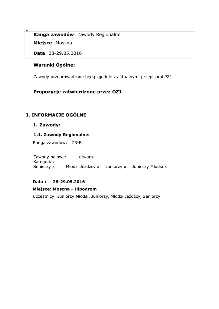 Ranga zawodów: Zawody Regionalne Miejsce: Moszna Data: 28