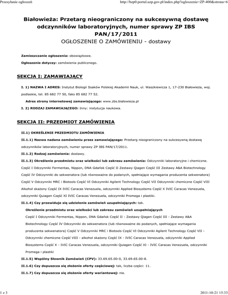 Przesyłanie ogłoszeń - Instytut Biologii Ssaków Polskiej Akademii