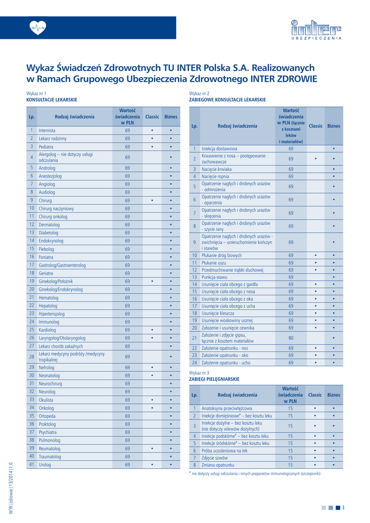 Wykaz Świadczeń Zdrowotnych INTER Zdrowie