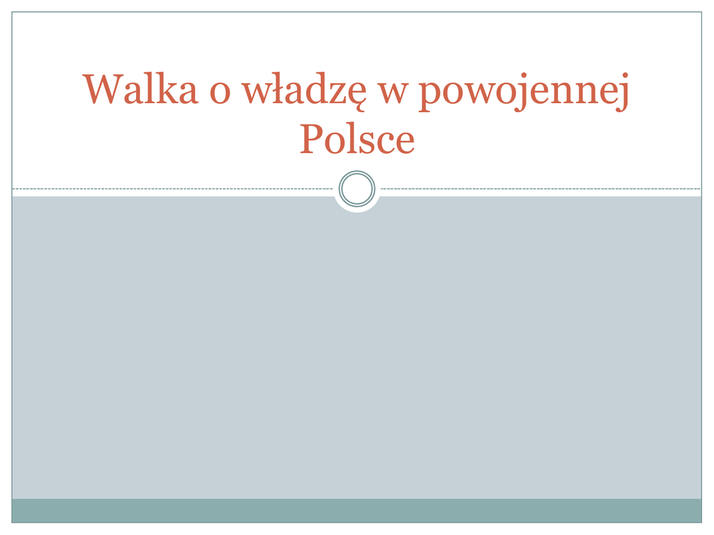 Walka o władzę w powojennej Polsce 1. Nowe granice Konferencje w Teheranie, Jałcie i Poczdamie Manifest PKWN i powołanie Rządu Tymczasowego Utrata na rzecz ZSRR 45% terytorium (ok. 180 tyś. km.) z Wilnem i Lwowem Zyskała ok.” 100 tyś. km „Ziemie Odzyskane” (Stalin był gwarantem tych ziem) 388 tyś./312 tyś. Granica z ZSRR Niewielka zmiana granic nastąpiła w 1951r.; Polska oddała ZSRR bogatą w węgiel kamienny część powiatu hrubieszowskiego W zamian otrzymała obszar Ustrzyk Dolnych z wyczerpanymi zasobami ropy naftowej Granica z Czechosłowacją i Niemcami Powrót do stanu z 1938r.; Zaolzie oddane Czechosłowacji Na zachodzie do Polski przyłączono: Pomorze Zachodnie, ziemię lubuską, Dolny i Górny Śląsk, Wolne Miasto Gdańsk, Warmię i Mazury Układy graniczne zawarto z państwami niemieckimi w 1950 (NRD) i 1970 (RFN) Przesiedlenia ludności/ mapa s.319 Z terenów zachodnich uciekło 5 mln Niemców; po 1945r., wysiedlono kolejne 2,5 mln W ich miejsce ok. Polacy z centralnej Polski, ludzi wracających z ZSRR oraz tzw. repatriantów z ziem zajętych przez ZSRR Tekst źródłowy s. 1/327 Do Polski wracają żołnierze, więźniowie obozów Z Polski przesiedlono, oprócz Niemców, Ukraińców, Białorusinów Na Zachodzie pozostało kilkaset tysięcy żołnierzy, robotników pracujących we Francji czy Niemczech, inteligencji; powód – wprowadzenie komunizmu w Polsce Ośrodki polskiej emigracji Londynie, Paryżu i Nowym Jorku 2. Przejmowanie władzy przez komunistów 31.12.1944 PKWN przekształcono w Rząd Tymczasowy; Premier – Edward Osóbka-Morawski Wice premier – Stanisław Janusz oraz Władysław Gomułka Minister Bezpieczeństwa Publicznego – Stanisław Radkiewicz Minister obrony – Michał Rola-Żymierski „opiekun” rządu – generał NKWD Iwan Sierow (jeden z największych zbrodniarzy stalinowskich, współodpowiedzialny za mord w Katyniu) 3. Proces szesnastu (Proces moskiewski) 1945r. Ciągła walka Armii Czerwonej z polskim podziemiem Marzec 1945r., zaproszono na spotkanie przedstawicielami władz konspiracyjnych do Pruszkowa; podstępnie aresztowano i wywieziono do Moskwy 18-21 czerwca 1945 – „proces szesnastu” („proces moskiewski); m.in. Ostatni dowódca AK – Leopold Okulicki, Delegat Rządu na Kraj - Jan Stanisław Jankowski, przewodniczący Rządu Jedności Narodowej – Kazimierz Pużak Oskarżono o współpracę z Niemcami na szkodę ZSRR Leopold OKulicki na procesie szesnastu Stosunkowo łagodne wyroki (do 10 lat), ale część zamordowana; Okulicki najprawdopodobniej w grudniu 1946r., Jankowski najprawdopodobniej w 1953r., na dwa tygodnie przed uwolnieniem Brak reakcji świata zachodniego 4. Tymczasowy Rząd Jedności Narodowej (TRJN) Rozmowy premiera Mikołajczyka z komunistami nt. powołania po wojnie nowego rządu, który miał reprezentować wszystkie siły polityczne Polski Zadanie TRJN: przygotowanie wyborów Tylko 3 ministerstwa dla nie-komunistów; m.in. Mikołajczyk – wicepremierem i szefem rolnictwa Premierem został Osóbka-Morawski 5 lipca 1945r., TRJN uznany przez aliantów; Cofnięcie poparcia dla rządu londyńskiego 1 lipca 1945r.; rozwiązała się Rada Jedności Narodowej (reprezentant partii politycznych sprzed okupacji) „Testament Polski Walczącej” źródło 2/327 Komuniście nie pozwalali na swobodną działalność partii przedwojennych 5. Referendum ludowe („3 razy tak”) 30 czerwca 1946r. Pytania oficjalne szacunkowe Czy jesteś za zniesieniem Senatu? 68% 26,9% Czy chcesz utrwalenia w przyszłej Konstytucji ustroju gospodarczego, zaprowadzonego przez reformę rolną i unarodowienie podstawowych gałęzi gospodarki krajowej, z zachowaniem ustawowych uprawnień inicjatywy prywatnej? 77,1% 42% Czy chcesz utrwalenia zachodnich granic Państwa Polskiego na Bałtyku, Odrze i Nysie Łużyckiej? 91,4% 66,9% 6. Wybory do sejmu ustawodawczego 1947r. Przed wyborami powstał Blok Demokratyczny złożony z PPR, PPS, SL, SD Kampania terroru; areszty kilkadziesiąt tysięcy członków PSL, morderstwa ok. 200 Utrudniano kampanię PSL-owi Relacja wyborcy Adama Kowalskiego z okręgu łódzkiego „Przewodniczący komisji wręczył mi kopertę oświadczając, że głosowanie jest jawne. Włożyłem do koperty jedynkę [numer unieważnionej listy PSL]. Po zwróceniu mu koperty, przewodniczący wyjął jedynkę i kazał włożyć trójkę [numer listy bloku]. Nie uczyniłem tego i wyszedłem z lokalu. Przewodniczący wysłał za mną ORMO-wca, aby mnie aresztować. […] Grupa złożona z 8 funkcjonariuszy MO […] zaczęło mnie bić. Bito gumami, żelaznym prętem grubości laski, a funkcjonariusz UB uderzył mnie 5 razy automatem. Po pobiciu wsadzono mnie do piwnicy. Potem ponownie wyciągnięto mnie z piwnicy i wtedy znów mnie pobito. Tym razem bił tylko oficer polityczny żelaznym prętem. Uderzył z pięćdziesiąt razy. Wsadzono mnie do piwnicy po raz trzeci trzymano do godziny15, potem zwolniono mnie”. Sfałszowane wyniki: PSL – 10% Blok Demokratyczny – 80% Protesty Mikołajczyka i aliantów zachodnich – bezskuteczne Nadal prześladowania PSL Październik 1947r., ucieczka Mikołajczyka z kraju Zamknięto „Gazetę Ludową” Władzę nad partią przejęli ludzie współpracujący z komunistami Listopad 1949r., powstało Zjednoczone Stronnictwo Ludowe 7. Żołnierze Wyklęci Po rozwiązaniu AK pozostały walczące oddziały partyzanckie; m.in. Zrzeszenie „Wolność i Niezawisłość” (WiN) – na czele Jan Rzepecki Ok.. 150 odziałów partyzanckich (ok. 20 tyś., ludzi) Walki z NKWD, Korpus Bezpieczeństwa Pogranicza, Wojska Ochrony Pogranicza Sierpień 1945r., amnestia; 30 tyś., którzy się ujawnili zamordowano lub aresztowano „Żołnierze wyklęci” 8. Akcja „Wisła” Partyzantka ukraińska – UPA (Ukraińska Powstańcza Armia) 1947r., początek akcji „Wisła” – przesiedlenie ludności ukraińskiej (pretekst – śmierć Świerczewskiego) Wywieziono ok. 150 000 Ukraińców 