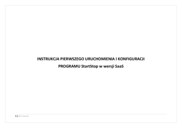 INSTRUKCJA PIERWSZEGO URUCHOMIENIA I KONFIGURACJI PROGRAMU StartStop w wersji SaaS 1|Strona INSTRUKCJA PIERWSZEGO URUCHOMIENIA I KONFIGURACJI PROGRAMU StartStop SAAS Konto administratora systemu zakładane i konfigurowane jest wstępnie przez usługodawcę. Korzystając z danych logowania otrzymanych od usługodawcy zanim przystąpimy do posługiwania się programem StartStop powinniśmy wykonać kilka podstawowych czynności wstępnych. 1. Logowanie Korzystając z danych otrzymanych od usługodawcy logujemy się do systemu. Login to zawsze pełny adres e-mail 2|Strona 2. Zmiana hasła Pierwszy krok po zalogowaniu, to zmiana hasła. Operacje tą wywołujemy klikając rozwijaną listę Menu i wybierając opcję „Zmiana hasła”. Należy podać stare hasło otrzymane od usługodawcy i dwukrotnie w odpowiednich polach wpisać nowe. Czynność kończymy klikając w przycisk „Zapisz” Uwaga: hasło musi mieć co najmniej 8 znaków w tym przynajmniej jedną dużą i jedną małą literę, 1 cyfrę i przynajmniej jeden znak specjalny ( np. !, #, & ) 3. Weryfikacja danych Firmy Proponujemy sprawdzić i ewentualnie poprawić lub uzupełnić dane Firmy. W tym celu rozwijamy listę „Menu” i wybieramy opcje „Dane firmy”. 3|Strona 4. Konfiguracja grup użytkowników Grupy to kryteria podziału użytkowników programu StartStop ze względu na rodzaj wykonywanych czynności. Dzięki temu osoba zarządzająca może np. wyświetlać zadania do wykonania w konkretnych grupach użytkowników. Aby stworzyć nowe grupy, należy: Z rozwijanej listy ustawień (symbol klucza) wybrać opcję „Zarządzenie użytkownikami”. Kliknąć przycisk „Dodaj grupę”. Wpisać jej nazwę i nacisnąć przycisk „Zapisz” ( rys. po lewej) 4|Strona 5. Konfiguracja użytkowników Aby stworzyć konto dla nowego użytkownika programu StartStop, należy: Z rozwijanej listy ustawień wybrać opcję „Zarządzenie użytkownikami”. Kliknąć przycisk „Dodaj użytkownika” i uzupełnić dane w oknie zakładanie konta. Użytkownik może zostać przydzielony do wielu grup w których może pełnić różne role. Może również mieć uprawnienia administratora oraz do zarządzania raportami ( rys. po lewej) Uwaga: hasło musi mieć co najmniej 8 znaków w tym przynajmniej jedną dużą i jedną małą literę, 1 cyfrę i przynajmniej jeden znak specjalny ( np. !, #, & ) login to zawsze adres e-mail 5|Strona 6. Dodawanie kontrahentów Program umożliwia kilka sposobów dodawania kontrahentów do bazy. a) Ręczne dodawanie kontrahentów za pośrednictwem rozwijanej listy „Menu” i wyboru opcji „Kontrahenci” ( rys. po lewej) b) Dodawanie nowego kontrahenta w trakcie rejestrowania wykonywanych czynności za pomocą przycisku „Dodaj kontrahenta” c) Import bazy kontrahentów z programu WF-Mag z pliku eksportu WF-Mag oraz pliku XLS bezpośrednio z bazy danych Microsoft SQL 1 funkcja niedostępna w wersji SaaS, dostępna w wersji do samodzielnej instalacji w tzw. chmurze prywatnej 1 6|Strona 7. Import bazy kontrahentów z programu WF-Mag – konfiguracja parametrów importu Klikamy rozwijaną listę ustawień z symbolem klucza. Wybieramy opcję konfiguracja importów. W oknie (rys. poniżej) podajemy nazwę bazy danych z jakiej dokonywać będziemy importów, wskazujemy adres serwera oraz port TCP skonfigurowany uprzednio w SQL Server Configurator Manager bazy WF-Mag. Nazwa użytkownika to login system administratora Microsoft SQL. Podajemy również hasło tego konta. Korzystając z przycisku „Testuj połączenie” sprawdzamy poprawność podanych wyżej danych. 7|Strona Wykonanie importu z bazy WF-Mag. Po skonfigurowaniu importu z rozwijanej listy „Menu” wybieramy opcje „Kontrahenci” i w oknie (rys. poniżej) klikamy przycisk „Importuj kontrahenta” 8|Strona