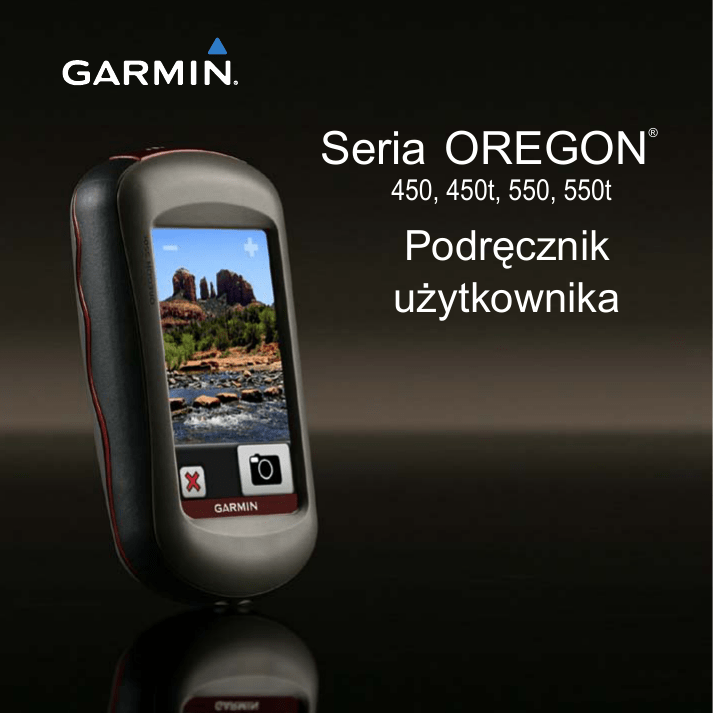 Seria OREGON ® 450, 450t, 550, 550t Podręcznik użytkownika © 2010 Garmin Ltd. lub jej oddziały Garmin International, Inc. 1200 East 151st Street, Olathe, Kansas 66062, USA Tel.: (913) 397 8200 lub (800) 800 1020 Faks: (913) 397 8282 Garmin (Europe) Ltd. Garmin Corporation Liberty House No. 68, Jangshu 2nd Hounsdown Business Park, Road, Southampton, Hampshire, Sijhih, Taipei County, SO40 9LR, Wielka Brytania Tajwan Tel.: +44 (0) 870 850 1241 Tel.: 886/2 2642 9199 (spoza Wielkiej Brytanii) Faks: 886/2 2642 9099 0808 238 0000 (z Wielkiej Brytanii) Faks: +44 (0) 870 850 1251 Wszelkie prawa zastrzeżone. Z wyjątkiem sytuacji wyraźnie opisanej w niniejszym dokumencie, żadnej części tego podręcznika nie można powielać, kopiować, przekazywać, rozpowszechniać, pobierać ani przechowywać na jakimkolwiek nośniku pamięci, w jakimkolwiek celu, bez wcześniej uzyskanej wyraźnej pisemnej zgody firm Garmin. Firma Garmin niniejszym udziela zgody na pobranie jednej kopii tego podręcznika na dysk twardy bądź inny elektroniczny nośnik pamięci w celu jego przeglądania oraz na wydrukowanie jednej kopii tego podręcznika lub jego korekty, pod warunkiem, iż elektroniczna bądź wydrukowana kopia tego podręcznika będzie zawierała pełen tekst niniejszej informacji o prawach autorskich. Rozpowszechnianie tego podręcznika lub jego korekty w celach handlowych bez zezwolenia jest surowo wzbronione. Informacje zawarte w niniejszym dokumencie mogą ulec zmianie bez uprzedzenia. Firma Garmin zastrzega sobie prawo do wprowadzenia zmian, ulepszeń do produktów lub ich zawartości bez konieczności powiadamiania o tym jakiejkolwiek osoby lub organizacji. Odwiedź stronę internetową firmy Garmin (www.garmin.com), aby pobrać bieżące aktualizacje i informacje uzupełniające, dotyczące użytkowania i funkcjonowania tego i innych produktów firmy Garmin. Garmin®, logo Garmin, Oregon® oraz BlueChart® g2 są znakami towarowymi firmy Garmin Ltd. lub jej oddziałów zarejestrowanymi w Stanach Zjednoczonych i innych krajach. myGarmin™ są znakami towarowymi firmy Garmin Ltd. lub jej oddziałów. Wykorzystywanie tych znaków towarowych bez wyraźnej zgody firmy Garmin jest zabronione. Logo Geocaching 4-box, czyli okręgu podzielonego na 4 części, oraz logo Wherigo są zastrzeżonymi znakami towarowymi firmy Groundspeak Inc.w Stanach Zjednoczonych i innych krajach. Wykorzystane za zgodą. Aplikacja Wherigo jest objęta patentem nr 6,691,032 oraz patentami amerykańskimi i zagranicznymi oczekującymi na zatwierdzenie. Windows® jest zastrzeżonym znakiem towarowym firmy Microsoft Corporation w Stanach Zjednoczonych i/lub w innych krajach. Mac® OS jest zastrzeżonym znakiem towarowym firmy Apple Computer, Inc. microSD™ jest znakiem towarowym firmy SanDisk lub jej oddziałów. Wstęp Wstęp Ostrzeżenie Należy zapoznać się z zamieszczonym w opakowaniu produktu przewodnikiem Ważne informacje dotyczące bezpieczeństwa i produktu zawierającym ostrzeżenia i wiele istotnych wskazówek. Niniejsza instrukcja obsługi zawiera instrukcje dotyczące użytkowania następujących produktów: • Oregon® 450 i 450t • Oregon 550 i 550t Porady i skróty • Dotknij lub , aby przewinąć i wyświetlić więcej opcji. • Dotknij , aby powrócić do poprzedniego ekranu. • Dotknij , aby powrócić do menu głównego. • Dotknij lub na stronie Mapa, aby powiększyć lub pomniejszyć. Podręcznik użytkownika serii Oregon Objaśnienia dot. obsługi Instrukcja „dotknij” oznacza dotknięcie palcem elementu na ekranie. Strzałki użyte w tekście (>) oznaczają konieczność dotknięcia kilku kolejnych elementów. Przykładowo, polecenie „Dotknij kolejno Dokąd? > Ślady” oznacza, że należy najpierw dotknąć na ekranie przycisku Dokąd?, a następnie Ślady. Rejestracja produktu Pomóż nam jeszcze sprawniej udzielać Tobie pomocy i jak najszybciej zarejestruj swoje urządzenie przez Internet. Odwiedź stronę http://my.garmin.com. Pamiętaj o konieczności zachowania oryginalnego dowodu zakupu (względnie jego kserokopii) i umieszczenia go w bezpiecznym miejscu. i Wstęp Kontakt z firmą Garmin W razie jakichkolwiek pytań dotyczących urządzenia Oregon prosimy o kontakt z działem pomocy technicznej firmy Garmin. Jeśli znajdujesz się w USA, odwiedź stronę www.garmin.com/support lub skontaktuj się telefonicznie z firmą Garmin USA, dzwoniąc pod numer (913) 397 8200 lub (800) 800 1020. Jeśli znajdujesz się w Wielkiej Brytanii, skontaktuj się telefonicznie z firmą Garmin (Europe) Ltd., dzwoniąc pod numer 0808 238 0000. Jeśli znajdujesz się w Europie, odwiedź stronę www.garmin.com/support i kliknij opcję Contact Support, aby uzyskać informacje o pomocy technicznej dostępnej w poszczególnych krajach, lub skontaktuj się telefonicznie z firmą Garmin (Europe) Ltd., dzwoniąc pod numer +44 (0) 870 850 1241. W razie potrzeby numer seryjny urządzenia Oregon można znaleźć w komorze baterii. Baterie należy wyjmować w sposób opisany na stronie 2. ii Opcjonalne akcesoria Lista dostępnych akcesoriów i map znajduje się na stronie internetowej firmy Garmin pod adresem http://buy.garmin.com. Dbanie o urządzenie Oregon Czyszczenie etui Używać ściereczki zwilżonej łagodnym roztworem czyszczącym i wytrzeć do sucha. Nie należy używać środków czyszczących, które mogą uszkodzić elementy plastikowe. Czyszczenie ekranu Używać miękkiej, czystej i niestrzępiącej się ściereczki. Użyć wody, alkoholu izopropylowego lub środka do czyszczenia soczewek okularów. W tym celu należy zwilżyć ściereczkę płynem i delikatnie wytrzeć nią ekran. Czyszczenie obiektywu aparatu Obiektyw należy czyścić wyłącznie, gdy zajdzie taka konieczność. Używać miękkiej ściereczki do obiektywów. Zwilżyć ściereczkę płynem do czyszczenia obiektywów i delikatnie przetrzeć obiektyw. Podręcznik użytkownika serii Oregon Spis treści Spis treści Wstęp...........
