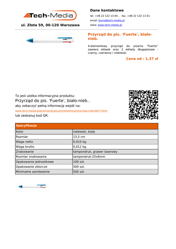 Przyrząd do pis. Fuerte, biało-nieb. - ulotka produktu - Tech