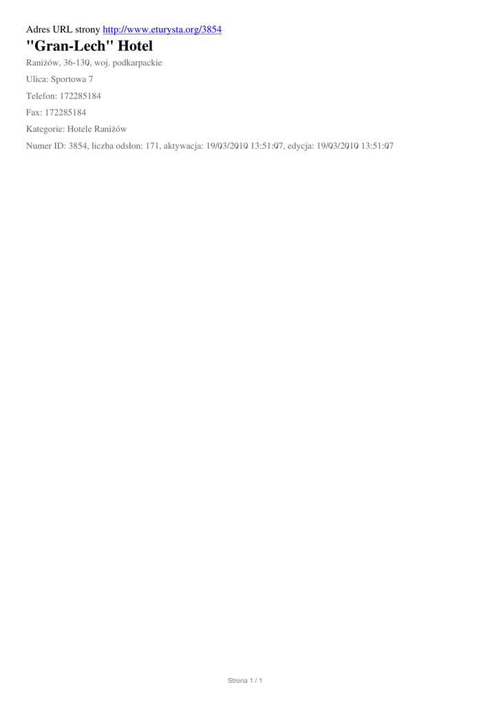 "Gran-Lech" Hotel, Ranizow, Sportowa 7