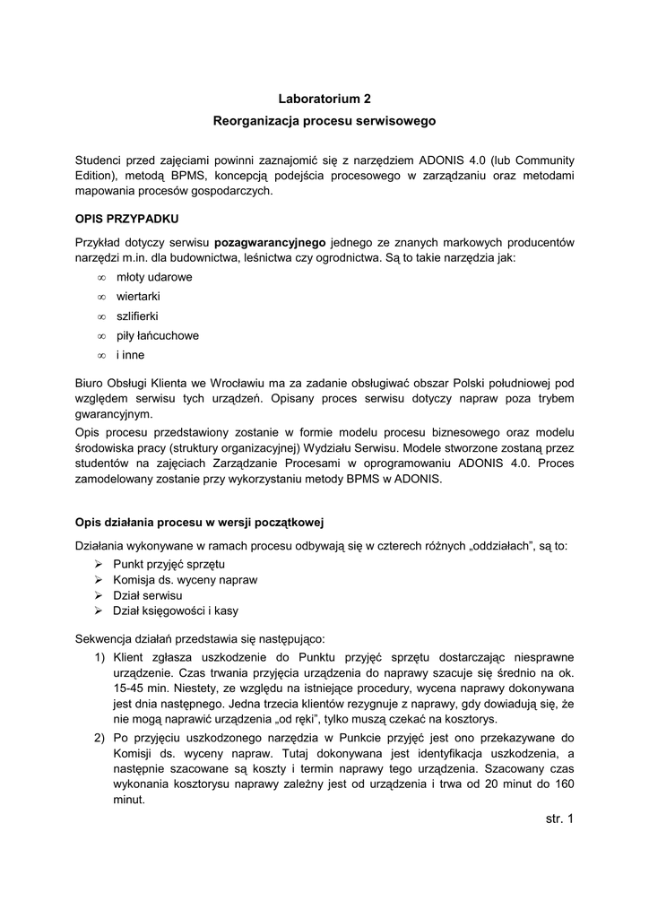 str. 1 Laboratorium 2 Reorganizacja procesu serwisowego