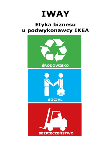 IWAY Etyka biznesu u podwykonawcy IKEA ŚRODOWISKO SOCJAL BEZPIECZEŃSTWO IWAY Standard Minimalne wymagania w zakresie środowiska, warunków socjalnych, warunków pracy, przy zakupie produktów, materiałów i usług. W IKEA rozumiemy, że nasza działalność ma wpływ na ludzi i naszą planetę, w szczególności na warunki pracy ludzi, a także na ochronę środowiska na poziomie lokalnym i globalnym. Głęboko wierzymy, że możemy prowadzić dobry biznes, będąc dobrą firmą. Jest to warunek konieczny dla naszego przyszłego rozwoju, który osiągniemy wraz z dostawcami i poddostawcami podzielającymi naszą wizję i ambicje. Przy ciągłej pracy z IWAY zawsze zadajemy sobie podstawowe pytania: Co leży w najlepszym interesie dziecka? Co leży w najlepszym interesie pracownika? Co leży w najlepszym interesie środowiska? Firma (Wasza Nazwa) chce prowadzić dobry biznes z IKEA. Również z Wami! Możemy to zrobić jeśli dzielimy wspólne wartości: Transparentność Zdrowy rozsądek Bycie w ciągłej drodze Poczucie wspólnoty Entuzjazm Dzielenie się dobrymi praktykami Stan umysłu – zamiast certyfikatów i dyplomów Każdy popełnia błędy – naprawiajmy je Prostota MINIMALNE WYMOGI IWAY: 1.1 Praca dzieci Dostawca nie korzysta z pracy dzieci. W miejscu zatrudnienia należy przechowywać dokumenty potwierdzające wiek wszystkich Pracowników. 1.2 Praca przymusowa i zniewolenie Dostawca IKEA nie korzysta z pracy przymusowej, pracy więźniów, nie stosuje metod zniewolenia lub pracy wbrew woli pracownika. 1.3 Etyka biznesu Działalność IKEA nie może być w żaden sposób powiązana z korupcją ani przekupstwem. Dokumenty wymagane przez prawo i związane z IWAY nie mogą być fałszowane. 1.4 Poważne zanieczyszczenie środowiska Dostawca IKEA nie stwarza sytuacji poważnego zanieczyszczenia środowiska, które należy rozumieć jako zanieczyszczenie, które z zakładu może się rozprzestrzeniać na dużym obszarze, a którego skutki będą bardzo poważne i kosztowne do naprawienia. 1.5 Poważne zagrożenie zdrowia i bezpieczeństwa Pracownicy nie mogą być narażani na poważne zagrożenia zdrowia i bezpieczeństwa. Należy rozumieć to jako bezpośrednie zagrożenie dla zdrowia i bezpieczeństwa, które może być przyczyną utraty życia lub trwałego uszkodzenia ciała lub wystąpienia choroby. 1.6 Godziny pracy Dostawca IKEA prowadzi przejrzysty i wiarygodny system ewidencji czasu pracy i wynagrodzeń. 1.7 Wynagrodzenie Pracownik otrzymuje wynagrodzenie w wysokości płacy minimalnej bądź wyższe. 1.8 Ubezpieczenie pracownika od nieszczęśliwych wypadków Dostawca zapewnia ubezpieczenie od nieszczęśliwych wypadków wszystkim pracownikom, które obejmuje leczenie na skutek wypadku przy pracy i odszkodowanie związane z wypadkiem, w rezultacie którego pracownik jest trwale niezdolny do pracy. 4.9 Wymóg standardu emisji Dla transportu IKEA stosowane mogą być tylko te ciągniki, których standard emisji wynosi 10 lat lub mniej. W krajach gdzie nie ma standardów emisji dla silników, ciągniki nie mogą przekraczać wieku 10 lat. Pełne wymogi IWAY znajdują się w: IWAY Standard General Section v.5.2 Transport Section v.5.1 (dla podwykonawców transportowych) DEKLARACJA OD: NAZWA FIRMY (PODWYKONAWCA IKEA): ____________________________ Serwisujący dla DOSTAWCY IKEA: ____________________________________ DANE FIRMY: /adres, numer telefonu, adres mailowy, adres strony internetowej/ ___________________________________________________________ ___________________________________________________________ OSOBA ODPOWIEDZIALNA ZA IWAY: ___________________________________________________________ RODZAJ SERWISU DLA DOSTAWCY IKEA: ___________________________________________________________ Potwierdzamy że przeczytaliśmy, zrozumieliśmy i zgadzamy się na spełnianie wymogów IKEA IWAY Standard General Section wersja 5.2 + IWAY Transport Section (jeśli dotyczy), wersja 5.1 oraz dokument The IKEA WAY on Preventing Child Labour and Supporting Young Workers, wersja 4. Dodatkowo wyrażamy zgodę na przeprowadzenie weryfikacji zapowiedzianej/niezapowiedzianej w zakresie IWAY przez przewoźnika IKEA, audytora IKEA i/lub audytora firmy zewnętrznej zleconej przez IKEA. Wymogi IWAY Must + punkt 4.9 z sekcji Transportowej są bezwzględnie zapewnione. -----------------/Data i miejsce/ -------------------- ---------------------------- /Pieczątka firmy/ /Podpis kierownictwa/