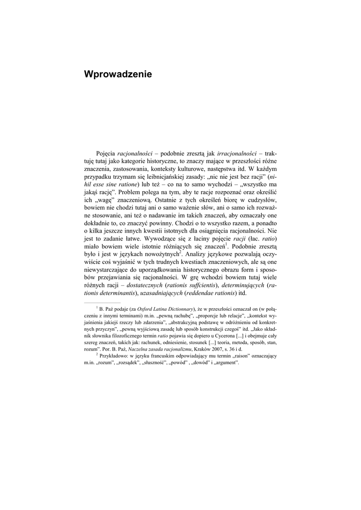 Wprowadzenie Pojęcia racjonalności – podobnie zresztą jak irracjonalności – traktuję tutaj jako kategorie historyczne, to znaczy mające w przeszłości róŜne znaczenia, zastosowania, konteksty kulturowe, następstwa itd. W kaŜdym przypadku trzymam się leibnicjańskiej zasady: „nic nie jest bez racji” (nihil esse sine ratione) lub teŜ – co na to samo wychodzi – „wszystko ma jakąś rację”. Problem polega na tym, aby te racje rozpoznać oraz określić ich „wagę” znaczeniową. Ostatnie z tych określeń biorę w cudzysłów, bowiem nie chodzi tutaj ani o samo waŜenie słów, ani o samo ich rozwaŜne stosowanie, ani teŜ o nadawanie im takich znaczeń, aby oznaczały one dokładnie to, co znaczyć powinny. Chodzi o to wszystko razem, a ponadto o kilka jeszcze innych kwestii istotnych dla osiągnięcia racjonalności. Nie jest to zadanie łatwe. Wywodzące się z łaciny pojęcie racji (łac. ratio) miało bowiem wiele istotnie róŜniących się znaczeń1. Podobnie zresztą było i jest w językach nowoŜytnych2. Analizy językowe pozwalają oczywiście coś wyjaśnić w tych trudnych kwestiach znaczeniowych, ale są one niewystarczające do uporządkowania historycznego obrazu form i sposobów przejawiania się racjonalności. W grę wchodzi bowiem tutaj wiele róŜnych racji – dostatecznych (rationis suffcientis), determinujących (rationis determinantis), uzasadniających (reddendae rationis) itd. ________________________ 1 B. Paź podaje (za Oxford Latina Dictionnary), Ŝe w przeszłości oznaczał on (w połączeniu z innymi terminami) m.in. „pewną rachubę”, „proporcje lub relacje”, „kontekst wyjaśnienia jakiejś rzeczy lub zdarzenia”, „abstrakcyjną podstawę w odróŜnieniu od konkretnych przyczyn”, „pewną wyjściową zasadę lub sposób konstrukcji czegoś” itd. „Jako składnik słownika filozoficznego termin ratio pojawia się dopiero u Cycerona [...] i obejmuje cały szereg znaczeń, takich jak: rachunek, odniesienie, stosunek [...] teoria, metoda, sposób, stan, rozum”. Por. B. Paź, Naczelna zasada racjonalizmu, Kraków 2007, s. 36 i d. 2 Przykładowo: w języku francuskim odpowiadający mu termin „raison” oznaczający m.in. „rozum”, „rozsądek”, „słuszność”, „powód” , „dowód” i „argument”. 8 Wprowadzenie Po to, aby odpowiedzieć na pytanie co jeszcze kryje się za wymienionymi tutaj racjami oraz co moŜe wchodzić w grę przy kreśleniu obrazu racjonalności w religii i religijności trzeba przejść do konkretów. Sporym ułatwieniem w tej kwestii moŜe być odwołanie się do tych myślicieli, którzy w przeszłości na temat racjonalności w religii i religijności juŜ sporo mieli do powiedzenia. Byli to m.in. tacy myśliciele jak: ze staroŜytnych Platon, Ciceron i Aureliusz Augustyn (św. Augustyn), natomiast z nowoŜytnych T. Hobbes i D. Hume, Wolter i A.N. Condorcet, G.W.F. Hegel, L. Feuerbach i M. Weber. Podejście kaŜdego z nich oznacza się pewną oryginalnością, natomiast tego ostatniego równieŜ przełomowością. Przełomowość ta w podejściu do religii Maxa Webera polega nie tyle nawet na pokazaniu, Ŝe jest ona zjawiskiem społecznym, czy teŜ na wykazaniu, Ŝe w dziejach dokonywały się procesy jej racjonalizacji (nazywane przez niego „odczarowywaniem świata”), co na ukazaniu, Ŝe coraz bardziej racjonalna religia i religijność stanowiły istotne wsparcie dla narodzin takiej potęgi współczesnego świata jaką jest kapitalizm. Przełom w tym podejściu był tak głęboki, Ŝe naleŜałoby w filozofii religii odróŜniać tradycje przedweberowskie od weberowskich. W rozprawie tej tymi drugim zajmuję się jedynie o tyle, o ile moŜe to być pomocne w zorientowaniu się, na czym polegają występujące między nimi istotne róŜnice. Natomiast pierwsze róŜnicuję tutaj na tradycje staroŜytne i nowoŜytne, z wyróŜnieniem w tych ostatnich tradycji brytyjskich, francuskich i niemieckich. Racji uzasadniających te podziały dostarczają róŜnice w pojmowaniu zarówno racjonalności, jak i religijności. JuŜ sama analiza znaczenia nadawanego pojęciu ratio w wyróŜnionych tutaj okresach pozwala dostrzec te róŜnice. U Platona wprawdzie się ono jeszcze nie pojawia, ale pojawia się jego grecki odpowiednik, to znaczy pojęcie eidos (eidétikós to tyle, co znający, wiedzący) oznaczający zarówno istotę rzeczy, jak i uwolnione od ograniczeń zmysłowości oraz wyposaŜone w róŜnorakie cnoty zmierzanie myśli do poznania istoty rzeczy. U Cycerona owo ration ma kilka znaczeń i nie w kaŜdym z nich wiąŜe się z owym platońskim zmierzaniem ku temu szczytowi, którego zdobycie dla posługującego się rozumem człowieka stanowi wyzwanie i zadanie do zrealizowania. Jednak w przynajmniej kilku z nich da się zauwaŜyć ten sam „ruch myśli” ku owemu szczytowi, a takŜe te same lub podobne cnoty, które kultywuje platoński mędrzec pragnący ów szczyt zdobyć (Cyceron nazywał to ratio recta). Augustyn, który dokonał swoistego zbilansowania Wprowadzenie 9 osiągnięć i potknięć obu filozofów oraz zapoczątkował nowy rozdział w podejściu do racjonalności religii i religijności wyŜej postawił ratio platońskie niŜ cycerońskie. Jednak jedno i drugie uznał za stojące niŜej niŜ ratio chrześcijańskie, znaczy takie, które oznacza – poza wszystkim innym – taki ruch myśli, którego celem jest poznanie Boga oraz dotarcie do tego, co wieczne, niezmienne, czysto duchowe itp. Tym zapoczątkowanym przez Augustyna i rozwijanym później przez wielkich teologów chrześcijańskich kierunkiem myślenia o racjonalności w religii i religijności szerzej się tutaj nie zajmuję. Chciałbym jednak nie tylko zasygnalizować jego obecność w europejskiej kulturze umysłowej, ale takŜe wyraźnie powiedzieć, Ŝe pojawiły się na nim takie ujęcia, w których racjonalność łączona jest z wiarą religijną, a pojęcie ratio oznacza za