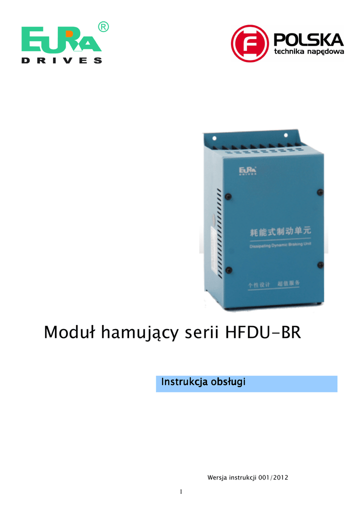 Moduł hamujący serii HFDU-BR Instrukcja obsługi Wersja instrukcji 001/2012 1 Aby zapewnić najlepsze parametry użytkowe i długą żywotność układu należy postępować według wytycznych z instrukcji. 1. Środowisko pracy, − temperatura otoczenia -10~60ºC, − wilgotność względna otoczenia poniżej 90% RH, − bezwzględnie nie wolno niczego wrzucać do wnętrza urządzenia, − moduł nie może pracować w otoczeniu gazów − otoczenie urządzenia musi być wolne od sproszkowanych metali, 2. Parametry pracy modułu, − zasilanie (przemiennika): 400VAC +10% -20%, 50/60Hz, − napięcie hamowania: wybierane według aktualnego zapotrzebowania, − szerokość napięcia hamowania: 20V − moment hamowania: ≤150% 3. Instrukcja postępowania, Na wewnętrznej płycie modułu hamującego mamy dwie diody sygnalizacyjne. Świecąca dioda czerwona oznacza stan zasilania. Druga dioda zielona świeci w chwili kiedy moduł jest w stanie hamowania dynamicznego. - napięcia hamowania, W module serii HFDU-BR mamy dostępne trzy progi inicjacji hamowania które ustawiamy przełącznikiem SW1. Pozwala nam to na rozpoczęcie procesu hamowania od napięcia 650, 690 lub 720V DC. W module fabrycznie ustawiona jest wartość 690V DC. Switch 1 Switch 2 Switch 3 Napięcie hamowania ON OFF OFF 720V OFF ON OFF 690V OFF OFF ON 650V 2 - Dla modułów hamujących serii HFDU-BR0301/0401/0501 mamy możliwość wyboru pracy master – slave. Praca mastera jest tutaj uzależniona od wartości napięcia, zaś praca kolejnego modułu slave jest kierowana już przez mastera. Switch 1 − Switch 2 Switch 3 Switch 4 master/slave ON OFF ON OFF Jeden moduł OFF ON ON OFF Master OFF ON OFF ON Slave Połączenie pomiędzy modułami master – slave, − okablowanie Dobrane przewody powinny posiadać odpowiedni przekrój ze względu na obciążalność prądową oraz odpowiednio dobraną izolację. Ze względu na izolację należy pamiętać że powinna ona być dobrana przynajmniej na napięcie do 1kV i być odporna na temperaturę. (układy rezystancyjne/grzałki), zalecana ognioodporna. Typ Przekrój przewodu [mm2] HFBU-DR0101 6 HFBU-DR0102 6 HFBU-DR0103 10 HFBU-DR0201 10 HFBU-DR0301 16 HFBU-DR0401 25 HFBU-DR0501 35 3 − Instalacja I. odległość pomiędzy przemiennikiem częstotliwości a modułem hamującym powinna być jak najmniejsza. Maksymalna odległość może wynosić do 1 metra. II. Po otwarciu obudowy modułu hamującego mamy cztery zaciski przyłączeniowe: DC(+)/P, DC(-)/-, BR1/P, BR2/B. Najpierw należy do zacisków P i B podłączyć rezystor hamujący. W tym wypadku biegunowość nie ma znaczenia. III. Następnie przygotować dwa odpowiednie przewody którymi połączymy zacisk DC(+)/P modułu hamującego z zaciskiem P przemiennika częstotliwości. Drugim przewodem łączymy zacisk DC(-)/- modułu hamującego z zaciskiem N/przemiennika częstotliwości. − Chłodzenie I. Moduły hamujący i rezystor podczas procesu hamowania mogą wydzielać dużą ilość ciepła. W związku z tym należy z góry zapewnić odpowiednie chłodzenie oraz środki bezpieczeństwa wobec ludzi którzy mogą mieć styk z tymi układami. II. Aby zapewnić optymalne warunki chłodzenia dla modułów hamujących wolna przestrzeń od góry i dołu powinna wynosić ≥100mm, a po bokach ≥50mm. III. Rezystor hamujący powinien być zamontowany z dala od substancji łatwo palnych lub wybuchowych. Należy też pamiętać o zabezpieczeniu rezystora przed dotykiem przez osoby niepowołane, ale jednocześnie układ powinien być zainstalowany w miejscu które pozwala na regularne przeglądy. IV. Wysoka temperatura emitowana przez rezystor i moduł hamujący może mieć wpływ na inne urządzenia co należy uwzględnić w chwili instalacji urządzeń. − Pozycja TYP HFBU-DR0101 HFBU-DR0102 HFBU-DR0103 HFBU-DR0201 HFBU-DR0301 HFBU-DR0401 HFBU-DR0501 Wymiary modułów i rezystorów hamujących, oraz ich parametry Moduły hamujące Rezystory hamujące Zewnętrzny Wymiar montażowy Rezystancja Zewnętrzny Wymiar Śruby wymiar[mm] [mm] i moc wymiar [mm] montażowy [mm] 135x135x226 100x211 211x140x316.5 211x140x316.5 211x140x316.5 194x304 194x304 194x304 M4 90Ω/1.5KW 484x68x125 M4 90Ω/3KW 487x70x210 M4 65Ω/4KW 587x70x210 M4 40Ω/6KW 661x70x210 M5 15Ω/9KW 660x260x133 M5 8Ω/9KW 660x260x133 M5 4 454 459 559 633 635 635 Obsługiwana moc przemiennika ≤7.5KW 11~15KW 18.5~30KW 37~55KW 75~90KW 110~132KW 160~220KW A B W H − Dobór modułów i rezystorów hamujących, Moc silnika [KW] 7.5 11 15 18.5 22 30 37 45 55 L Dla niewielkich bezwładności HFBU-DR0101 150Ω/450W HFBU-DR0102 100Ω/700W HFBU-DR0102 80Ω/900W HFBU-DR0103 65Ω/1.2kW HFBU-DR0103 55Ω/1.4kW HFBU-DR0103 40Ω/1.8kW HFBU-DR0201 33Ω/2.3kW HFBU-DR0201 27Ω/2.7kW HFBU-DR0201 22Ω/3.3kW 5 Dla dużych bezwładności HFBU-DR0101 95Ω/750W HFBU-DR0102 65Ω/1.1kW HFBU-DR0102 50Ω/1.5kW HFBU-DR0103 40Ω/2kW HFBU-DR0103 35Ω/2.2kW HFBU-DR0103 25Ω/3kW HFBU-DR0201 20Ω/4kW HFBU-DR0201 16Ω/4.5kW HFBU-DR0301 13Ω/6kW 75 90 110 132 HFBU-DR0301 16Ω/4.5kW HFBU-DR0301 14Ω/5.4kW HFBU-DR0401 11Ω/6.6kW HFBU-DR0401 9Ω/9kW 160 HFBU-DR0501 7.5Ω/10kW 180 HFBU-DR0501 6.7Ω/11kW 200 HFBU-DR0501 6.2Ω/12kW 220 HFBU-DR0501 6Ω/14kW 250 280 315 HFBU-DR0401 10Ω/7.5kW HFBU-DR0401 8Ω/9KW HFBU-DR0501 7Ω/11kW HFBU-DR0501 6Ω/14kW Dwa moduły HFBU-DR0401 są połączone równolegle, a do każdego z nich jest podpięty rezystor hamujący 9Ω/9kW Dwa moduły HFBU-DR0401 są połączone równolegle, a do każdego z nich jest podpięty rezystor hamujący 8Ω/9kW Dwa moduły HFBU-DR0501 są połączone równolegle, a do każdego z nich jest podpięty rezystor hamujący 7.2Ω/10kW Dwa moduły HFBU-DR0501 są połączone równolegle, a do każdego z nich jest podpięty rezystor hamujący 6.6Ω/11kW Dwa moduły HFBU-DR0401 są połączone równolegle, a do każdego z nich jest podpięty rezystor hamujący 9.6Ω/8kW Dwa moduły HFBU-DR0401 są połączone równolegle, a do każdego z nich jest podp