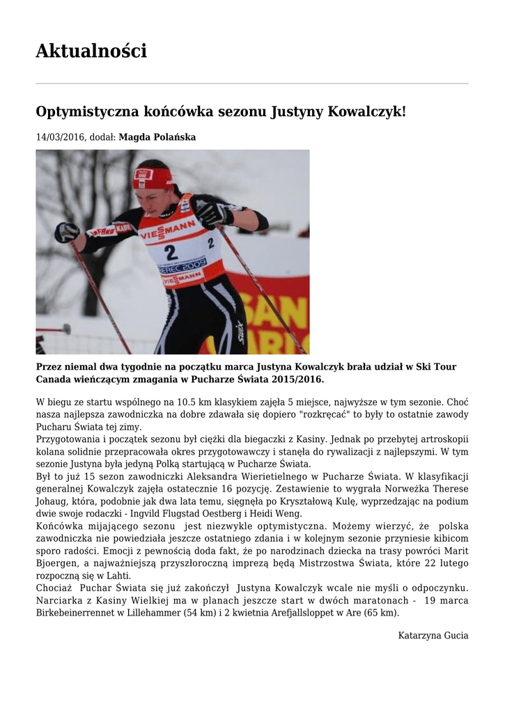 Aktualności Optymistyczna końcówka sezonu Justyny Kowalczyk!