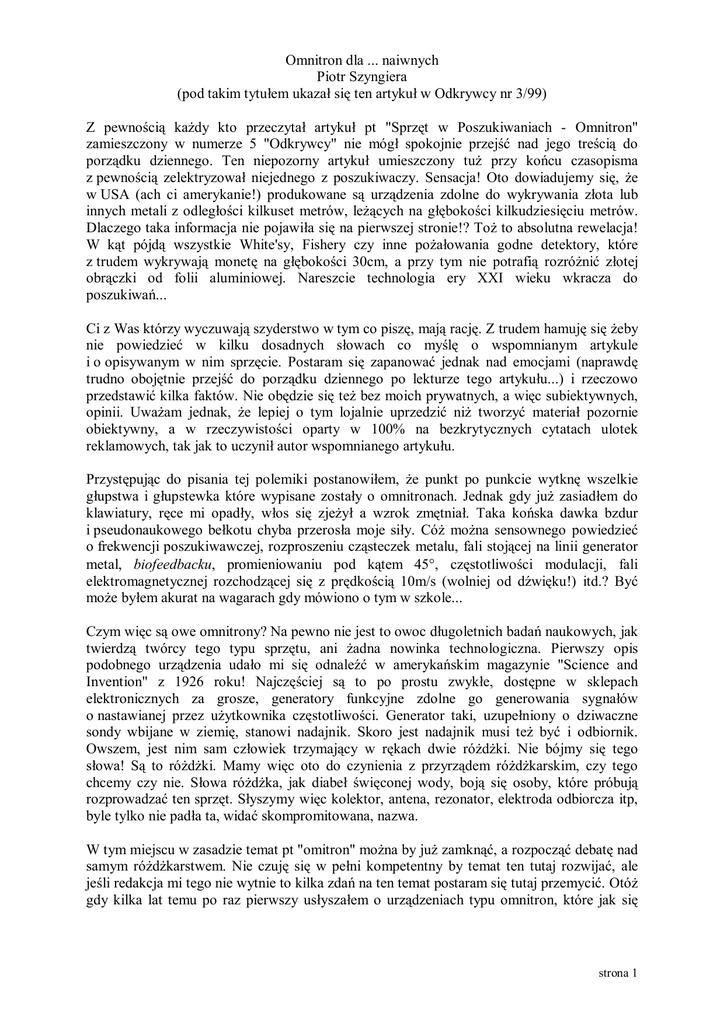 Z pewnością każdy kto przeczytał artykuł pt "Sprzęt w Poszukiwaniach - Omnitron"