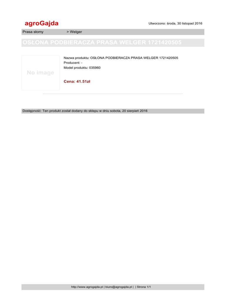OS£ONA PODBIERACZA PRASA WELGER 1721420505