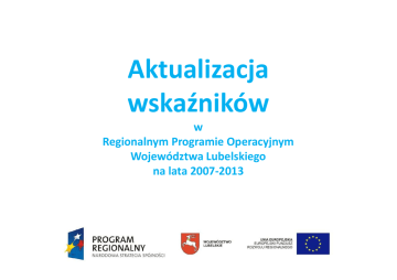 Aktualizacja wskaźników w Regionalnym Programie Operacyjnym Województwa Lubelskiego na lata 2007-2013 Wskaźniki osiągnięcia celu Osi Priorytetowej VIII Z uwagi na fakt, iŜ w ramach VIII Osi Priorytetowej RPO WL przewidziano wsparcie inwestycji z zakresu infrastruktury sportowej prowadzących do podnoszenia jakości i dostępności obiektów sportowych, listę wskaźników osiągnięcia celu Osi uzupełniono o dwa wskaźniki odnoszące się do przedmiotowego zakresu wsparcia: wskaźnik produktu: liczba wspartych obiektów infrastruktury sportowej wskaźnik rezultatu: pojemność (capacity) wspartych obiektów infrastruktury sportowej. 01 Wskaźniki osiągnięcia celu Osi Priorytetowej VIII Na podstawie wielkości dostępnej alokacji w ramach RPO WL dla ww. typu wsparcia oraz biorąc pod uwagę średnie koszty inwestycji w infrastrukturę sportową oszacowano zakładane wartości w roku docelowym 2013 na poziomie: liczba wspartych obiektów infrastruktury sportowej: 16 szt. pojemność (capacity) wspartych obiektów infrastruktury sportowej: 35900 osób. 01 Wskaźniki kontekstowe Załącznik nr 2. Lista wskaźników kontekstowych dla RPO WL został poddany aktualizacji i dostosowaniu do listy wskaźników kontekstowych, którymi posługuje się MRR. Dokonano: zmian stylistycznych w nazwie części wskaźników, zmian edytorskich w kompozycji tabeli, uszczegółowienia kolumny „Uwagi” zawierającej listę wskaźników programowych, dla których tłem jest dany wskaźnik kontekstowy, uszczegółowienia kolumny „Źródło”, nieznacznych korekt w wartości wskaźników w oparciu o zaktualizowane dane statystyczne (GUS). 01 Wpływ ustawy z dnia 27 sierpnia 2009 r. o finansach publicznych na Regionalny Program Operacyjny Województwa Lubelskiego na lata 2007-2013 Zmiany horyzontalne wynikające z wejścia w życie znowelizowanej ustawy o finansach publicznych Zmiana Regionalnego Programu Operacyjnego Województwa Lubelskiego na lata 2007-2013 (RPO WL): jest związana z wejściem w Ŝycie Ustawy z dnia 27 sierpnia 2009 r. o finansach publicznych, wprowadza istotne zmiany w zakresie finansowania programu operacyjnego realizowanego z udziałem środków funduszy i Funduszu Spójności, traktowana jest jako zmiana o charakterze technicznym. strukturalnych Zmiany horyzontalne wynikające z wejścia w życie znowelizowanej ustawy o finansach publicznych We wszystkich programach operacyjnych, dotychczasowe opisy dotyczące zarządzania finansowego, ulegają zmianie na opisy opracowane przez Instytucję Koordynującą Narodowe Strategiczne Ramy Odniesienia (które podlegały ewentualnemu dostosowaniu do specyfiki programu operacyjnego). Zmiany horyzontalne wynikające z wejścia w życie znowelizowanej ustawy o finansach publicznych Wraz ze zmianą RPO WL wprowadzone zostają analogiczne zmiany w innych dokumentach tj. Szczegółowym Opisie Osi Priorytetowych – Uszczegółowienie Programu, Porozumieniu pomiędzy IZ - IP II, Kontrakcie Wojewódzkim, Instrukcji Wykonawczej IZ RPO WL oraz IW IP II RPO WL, Opisie Systemu Zarządzania i Kontroli, wytycznych szczegółowych IZ RPO WL, wzór umowy/decyzji o dofinansowanie, podręczniki, etc. Dziękuję za uwagę
