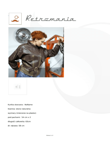 Kurtka skorzana : NoName tkanina: skora naturalna wymiary (mierzone na płasko): pod pachami: 54 cm x 2 długość całkowita: 63cm dł. rękawa: 58 cm Strona 1 z 2 Strona 2 z 2