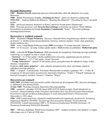 1918 – wraz z niepodległą Polską powstaje ZHP zrzeszające 33 tysiące harcerek i harcerzy.