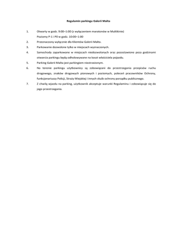 Regulamin parkingu Galerii Malta 1. Otwarty w godz