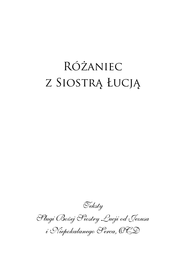 Różaniec z Siostrą Łucją © Copyright Carmelo de Santa Teresa – Coimbra © Copyright for the Polish edition by Flos Carmeli 2014 Tłumaczenie Beata Moderska Redakcja Wojciech Ciak OCD Korekta Zofia Błajek Imprimatur Bp Damian Bryl, Wikariusz Generalny Poznań, dn. 27.02.2014 r., N. 915/2014 Nihil obstat O. Placyd Paweł Ogórek OCD, Cenzor Poznań, dn. 15.02.2014 r. Imprimi potest O. Roman Jan Hernoga OCD, Prowincjał Warszawa, dn. 21.02.2014 r., L. dz. 59/P/2014 ISBN 978-83-64430-14-5 Wydawnictwo Flos Carmeli ul. Działowa 25; 61-747 Poznań tel.: 61 856 08 34 | fax: 61 856 09 47 www.floscarmeli.pl | e-mail: [email protected] Książkę tę dedykujemy: Naszej bardzo drogiej siostrze Łucji, z którą przez tak wiele lat wspólnie modliłyśmy się, rozmawiałyśmy, mieszkałyśmy i uśmiechałyśmy się do siebie. Jest to dowód naszej bezwarunkowej miłości i wdzięczności oraz świadectwo przesłania: nigdy nie zapomnieć o tym, o co prosiła Najświętsza Panna. I wszystkim powierzającym się Słudze Bożej, szukającym jej wstawiennictwa u Boga i Pani Różańca. Modlimy się, abyśmy zawsze mogli odczuwać obecność Przyjaciela, Pasterza Fatimy, który uczynił różaniec jej ukochaną modlitwą, którą odmawiała z taką miłością każdego dnia swego życia. Siostry Karmelitanki Karmel Coimbra Wezwanie do codziennej modlitwy różańcowej Módlcie się na różańcu każdego dnia, aby otrzymać pokój dla świata i zakończenie wojny. Wezwanie to po raz pierwszy zostało przekazane 13 maja 1917 roku, kiedy troje biednych dzieci z Aljustrel, Łucja, Franciszek i Hiacynta, pasło swoje stado na łące zwanej Cova da Iria. Było powtarzane pastuszkom wielokrotnie i we wszystkich objawieniach w taki sposób, że nie ulega wątpliwości, że codzienna modlitwa różańcowa jest naszą drogą i środkiem wiodącym do zbawienia i uzyskania przez wstawiennictwo Maryi wszelkich łask, których nam potrzeba. W wieku lat 10 Łucja została wybrana przez Boga i Maryję, aby przekazać światu fatimskie przesłanie. Oto co osiągnęła przez 87 lat, które jeszcze przeżyła. Maryja prosiła ją, aby cierpliwie czekała na powrót do Niego: 5 Wezwanie do codziennej modlitwy różańcowej Zostaniesz tutaj przez jakiś czas. Jezus pragnie, abym za twoją sprawą stała się znana i kochana. Chce wprowadzić w świecie nabożeństwo do mego Niepokalanego Serca (Pamiętniki siostry Łucji II). Łucja urodziła się 28 marca 1907 roku w Aljustrel, w parafii Fatima. Wraz ze swymi kuzynami, błogosławionym Franciszkiem i Hiacyntą Marto, otrzymała trzy widzenia Anioła Portugalii (1916) i osiem objawień Maryi (1917), która prosiła ich, aby się modlić, szczególnie modlitwą różańcową, i podjąć pokutę i zadośćczynienie w intencji nawrócenia grzeszników. W 1925 roku Łucja wstąpiła do Kongregacji św. Doroty w Hiszpanii, gdzie w Tui Pontevedra miała widzenie, w którym Najświętsza Panna prosiła ją o rozpowszechnienie nabożeństwa pięciu pierwszych sobót, o czym książeczka ta mówi w części trzeciej. Pragnąc życia bardziej kontemplacyjnego, aby móc lepiej wykonać powierzone jej zadanie, 25 marca 1948 roku Łucja wstąpiła do Karmelu w Coimbra, gdzie całkowicie oddała się modlitwie i ofierze. Matka Boża wzięła Łucję do siebie 13 lutego 2005 roku, a jej ciało spoczywa w bazylice w Fatimie od 19 lutego 2006 roku. 6 Wezwanie do codziennej modlitwy różańcowej W swej książce Apele orędzia fatimskiego siostra Łucja dokonuje refleksji nad modlitwą różańcową, rozważa jej tajemnice. Medytacje zawarte w tej książce pochodzą właśnie stamtąd, choć czasem są skrócone, aby rozważania nie były zbyt długie. We wprowadzeniu do wspomnianej książki ojciec Jesus Castellano Cervera mówi, że Pełna pasji apologia różańca świętego, tej rękojmi zostawionej przez Maryję pastuszkom fatimskim, jest w ujęciu Łucji mocna i przekonująca. Również tutaj Autorka uwypukla biblijną inspirację tej szczególnej modlitwy maryjnej. W różańcu znajduje zresztą bardzo prostą i głęboką zarazem drogę pobożności maryjnej, która pozwala przebiegać wraz z radosnymi, bolesnymi i chwalebnymi tajemnicami naszego zbawienia drogę Chrystusa i drogę Maryi. Rozważania dotyczące tajemnic światła, które Jan Paweł II w 2002 r. dodał do różańca, uzupełniliśmy tekstami wziętymi także z pism siostry Łucji. Modląc się na różańcu wraz z siostrą Łucją, widzimy, jak ona sama modliła się i rozważała każdego dnia i jak modlitwa ta ją wspierała, nie tylko w czasie widzeń, ale przez całe jej życie. 7 Wezwanie do codziennej modlitwy różańcowej Dostrzegamy, że oczy jej są utkwione w każdej z tajemnic, a serce tej drogiej córki Maryi jest pełne życia i wrażliwości. Także w książce Apele orędzia fatimskiego siostra Łucja podkreśla, że „odmawianie różańca świętego było zalecane przez wszystkich papieży, którzy w ostatnich stuleciach służyli Kościołowi”. Zalecenie to Łucja rozpowszechniała w trakcie swego życia, a jej wielkim pragnieniem było to, aby każdy modlił się z miłością i oddaniem, wierząc, że Maryja jest Matką zawsze wierną i obecną w każdej chwili naszego życia. Od czasu objawień w Fatimie wielu pielgrzymów prosiło Łucję aby wraz z nimi modliła się na różańcu. Dzisiaj, wraz z tą małą książeczką, prezentujemy prosty i użyteczny sposób włączenia się w modlitwę siostry Łucji, w takiej samej postawie gotowości do spełnienia pragnienia Maryi by w ten sposób wznieść swe dusze ku Jej umiłowanemu Synowi, Jezusowi. 8 $%% "# Łucja z różańcem w ręku. Zdjęcie wykonane w czasie objawień (1917) I %& Bóg rozpoczął dzieło odkupienia w sercu Maryi, gdyż to Jej „tak” stanowiło początek, „a Słowo stało się ciałem i mieszkało między nami” (J 1,14). I tak, w najściślejszej jedności, jaka może zaistnieć pomiędzy dwoma istotami l