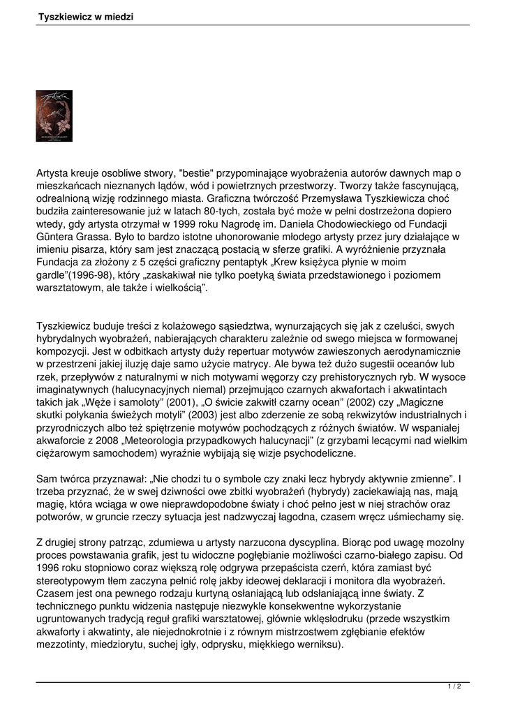 Tyszkiewicza wśród najwybitniejszych grafików w skali nie tylko polskiej.