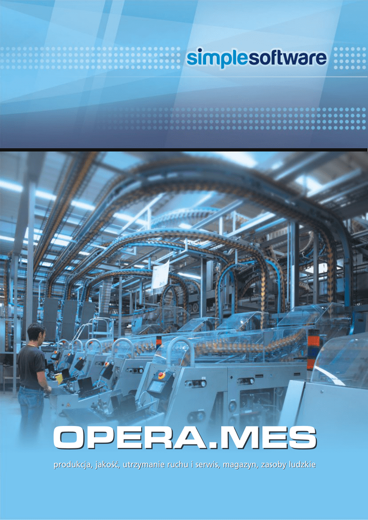 OPERA.MES produkcja, jakoœæ, utrzymanie ruchu i serwis, magazyn, zasoby ludzkie Wprowadzenie Korzyœci Przewagi OPERA to wszechstronny system klasy MES (Manufacturing Execution System), umo¿liwiaj¹cy bezpoœredni monitoring i zarz¹dzanie produkcj¹ z poziomu hali produkcyjnej. OPERA jest produktem o budowie modu³owej, zapewniaj¹cym wsparcie we wszystkich kluczowych obszarach obejmowanych przez systemy zgodne ze standardem MES: od produkcji, poprzez kontrolê jakoœci, zarz¹dzanie magazynami, utrzymanie ruchu i serwis, na zarz¹dzaniu prac¹ personelu koñcz¹c. Zmienna sytuacja rynkowa zmusza firmy produkcyjne do ci¹g³ego podejmowania dzia³añ w kierunku wzrostu konkurencyjnoœci. OPERA MES to oprogramowanie umo¿liwiaj¹ce istotne jej podniesienie. Wdro¿enie dzia³añ bliskich idei Lean Manufacturing powoduje wzrost produktywnoœci i jakoœci, przy jednoczesnej redukcji kosztów i czasu produkcji. Dziêki temu, systemy MES uzyskuj¹ najszybszy zwrot z inwestycji spoœród wszystkich narzêdzi informatycznych stosowanych w przedsiêbiorstwach produkcyjnych. Kluczow¹ przewag¹ systemu OPERA MES nad innymi rozwi¹zaniami jest pe³na konfigurowalnoœæ i przyjazny, intuicyjny interfejs, co potwierdzaj¹ liczne wdro¿enia w zak³adach produkcyjnych o ró¿nym charakterze produkcji i ró¿nej wielkoœci, pocz¹wszy od ma³ych firm a skoñczywszy na korporacjach. OPERA MES doskonale spe³nia wymagania klientów chc¹cych obni¿yæ koszty produkcji. OPERA MES sprawdza siê wszêdzie tam, gdzie wymagana jest œcis³a koordynacja pracy maszyn, ludzi i przep³ywu materia³u. OPERA MES dostarcza w czasie rzeczywistym wszelkich informacji o postêpie produkcji, poziomie wydajnoœci, wynikach kontroli jakoœci, genealogii produktów, stanach magazynowych, utrzymaniu ruchu i wielu innych. Korzyœci z zastosowania OPERA MES: wszystkie informacje znajduj¹ siê w jednym syste+ mie, w jednym miejscu; u¿ytkownik nie musi poszukiwaæ ich w ró¿nych Ÿród³ach, gromadzenie danych zorganizowane jest spraw+ nie i zawsze w sposób dopasowany do potrzeb, oprogramowanie zapewnia natychmiastowy dos+ têp do kluczowych informacji produkcyjnych Oprogramowanie OPERA MES mo¿na œciœle zintegrowaæ z systemami ERP, autorstwa zarówno œwiatowych dostawców, jak i lokalnych producentów. Integracja odbywa siê poprzez specjalnie w tym celu dostarczany modu³, dziêki czemu proces przebiega bez koniecznoœci ponoszenia wysokich nak³adów na programistów, konsultantów i póŸniejsze utrzymanie. System oparto na technologii Microsoft, kompatybilnej z 64-bitow¹ architektur¹, co zapewnia d³ugi okres ochrony inwestycji (pe³na kompatybilnoœæ z najnowszymi systemami operacyjnymi Microsoft). Szerokie spektrum gotowych do u¿ycia wykresów i raportów umo¿liwia analizê wielu aspektów produkcji, a w szczególnoœci: postêpu zleceñ produkcyjnych, + poziomu obci¹¿enia ludzi i maszyn, + stosunku godzin efektywnie przepracowanych do + godzin p³atnych, przestojów, + poziomu zapasów, + + œledzenie partii produkcyjnych. poprzez przejrzysty, intuicyjny i ³atwy w obs³udze interfejs, oprogramowanie zawiera zestaw gotowych do + u¿ycia analiz dobranych dla procesów produkcyj- mo¿liwoœæ efektywnego zarz¹dzania niespodzie+ wanymi zdarzeniami i ³atwiejszego podejmowania decyzji w zwi¹zku z pojawiaj¹cymi siê incydentami, wzrost produktywnoœci i optymalizacja zasobów, + architektura systemu pozwala wyjœæ naprzeciw tach, chc¹cych monitorowaæ jedynie najwa¿niejsze, kluczowe zasoby, równoczeœnie niewykluczaj¹c Druga aplikacja - OPERA Interfejs u¿ytkownika umo¿liwia prowadzenie analiz i budowanie raportów w oparciu o zgromadzone przez OPERA Monitor dane, daj¹c pewnoœæ kierownictwu, ¿e przy podejmowaniu decyzji wziêto pod uwagê rzeczywist¹ sytuacjê we wszystkich obszarach produkcyjnych oraz to, ¿e dane u¿yte do analiz s¹ w³aœciwe. mo¿liwoœci rozbudowy do kompleksowego i spój- Oprogramowanie OPERA MES jest oprogramowaniem dostosowanym do pracy wielojêzycznej, tak¿e w jêzyku polskim. nego œrodowiska manufacturing intelligence. MAGAZYN Gromadzenie danych z poziomu hali produkcyjnej Gromadzenie informacji o wynikach testów i zarz¹dzanie testami Zarz¹dzanie magazynem z wykorzystaniem kodów kreskowych Bezpoœrednie pod³¹czenie do maszyn Narzêdzia statystycznej kontroli procesu WskaŸniki KPI wraz z analiz¹ Identyfikacja i œledzenie partii Zarz¹dzanie prac¹ i zleceniami OPERA Monitor jest zintegrowany z wszystkimi typami sprzêtu wystêpuj¹cego w u¿yciu na hali produkcyjnej: terminalami radiowymi, komputerami PC i sterownikami PLC, kartami wejœæ-wyjœæ, urz¹dzeniami pomiarowymi i licznikami, drukarkami etykiet etc. oczekiwaniom klientów o ograniczonych bud¿e- JAKOŒÆ Integracja z ERP Struktura OPERA MES oparta jest na dwóch kluczowych dla systemu aplikacjach. Pierwsza z nich, tzw. OPERA Monitor, komunikuj¹ca siê z punktami, w których rejestrowane s¹ informacje pochodz¹ce z hali produkcyjnej, gromadzi dane daj¹c pewnoœæ, ¿e bêd¹ one w³aœciwe i spójne. nych, które mo¿na dodatkowo rozbudowywaæ lub modyfikowaæ, PRODUKCJA Monitoring produkcji Wszystkie raporty, tabele i wykresy mog¹ byæ modyfikowane przez klienta zgodnie z jego indywidualnymi potrzebami. UTRZYMANIE RUCHU Przegl¹dy i dzia³ania prewencyjne (TPM) Zarz¹dzanie narzêdziami i wyposa¿eniem ZASOBY LUDZKIE Harmonogramowanie, rejestracja i rozliczanie czasu pracy Kontrola dostêpu Posi³ki regeneracyjne Opis funkcjonalnoœci Logika dzia³ania OPERA MES wspiera optymalizacjê zasobów poprzez monitorowanie w czasie rzeczywistym danych o produkcji, odchyleniach od planu, efektywnoœci pracy ludzi i maszyn, obci¹¿eniu centrów kosztowych wraz z informacj¹ o opóŸnieniach, efektach kontroli jakoœci, partiach, numerach seryjnych, przep³ywie materia³ów, czasach przezbrojeñ. Najczêœciej wdra¿anym modu³em funkcjonalnym OPERA MES jest modu³ Produkcja, który umo¿liwia wgl¹d