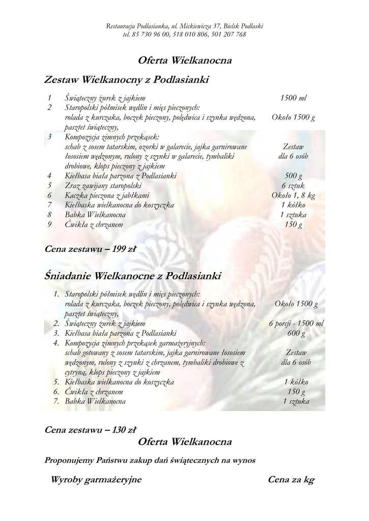 Oferta Wielkanocna - Restauracja "Podlasianka"