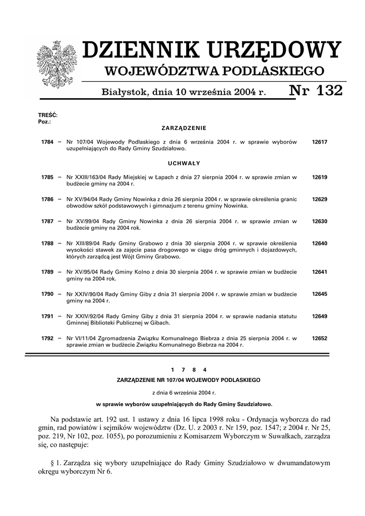 dziennik urzędowy - Podlaski Urząd Wojewódzki