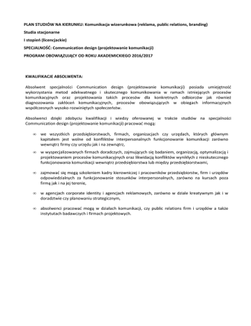 PLAN STUDIÓW NA KIERUNKU: Komunikacja wizerunkowa