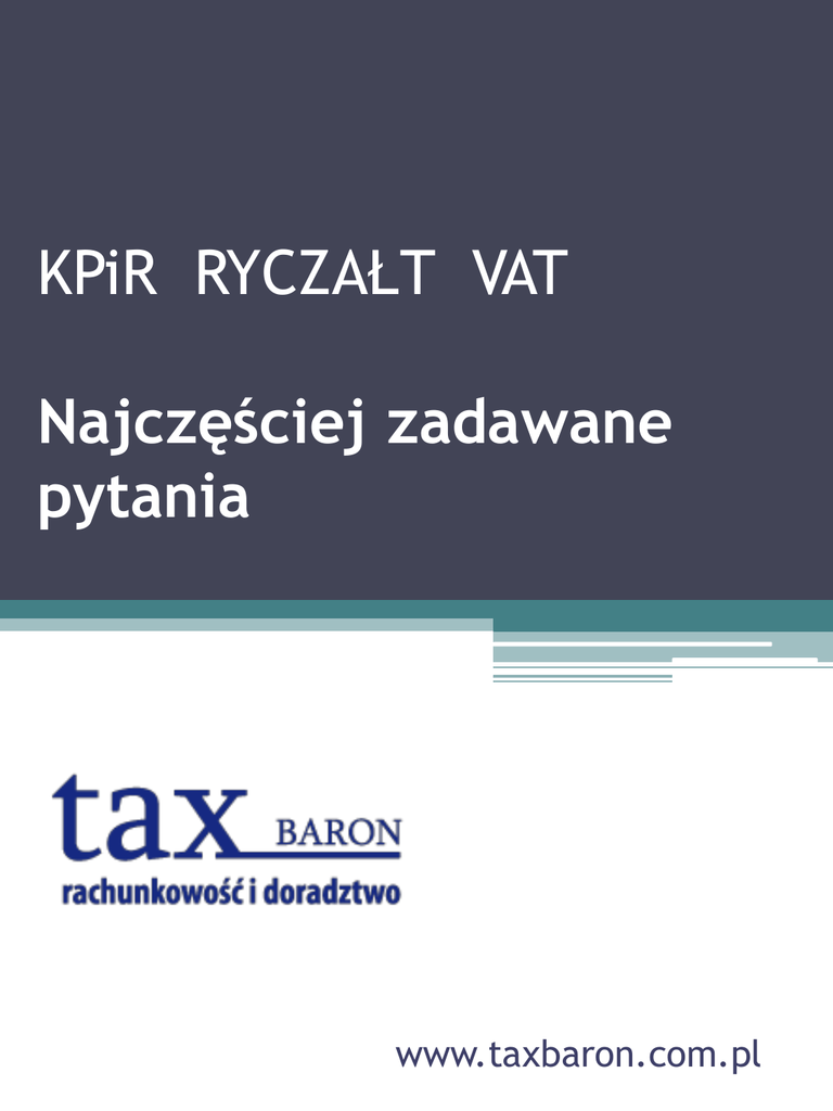 najcześciej zadawane pytania KPiR-RYCZAŁT-VAT