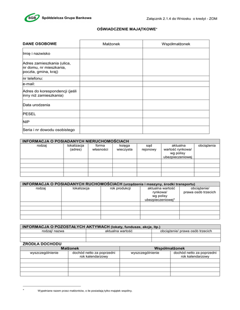 Oswiadczenie majatkowe - Bank Spółdzielczy w Skórczu