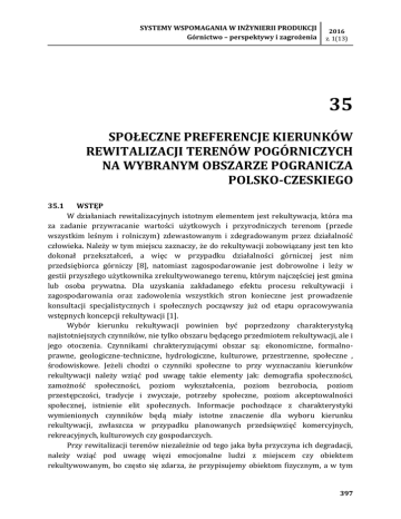 SYSTEMY WSPOMAGANIA W INŻYNIERII PRODUKCJI Górnictwo – perspektywy i zagrożenia 2016 z. 1(13) 35 SPOŁECZNE PREFERENCJE KIERUNKÓW REWITALIZACJI TERENÓW POGÓRNICZYCH NA WYBRANYM OBSZARZE POGRANICZA POLSKO-CZESKIEGO 35.1 WSTĘP W działaniach rewitalizacyjnych istotnym elementem jest rekultywacja, która ma za zadanie przywracanie wartości użytkowych i przyrodniczych terenom (przede wszystkim leśnym i rolniczym) zdewastowanym i zdegradowanym przez działalność człowieka. Należy w tym miejscu zaznaczy, że do rekultywacji zobowiązany jest ten kto dokonał przekształceń, a więc w przypadku działalności górniczej jest nim przedsiębiorca górniczy [8], natomiast zagospodarowanie jest dobrowolne i leży w gestii przyszłego użytkownika zrekultywowanego terenu, którym najczęściej jest gmina lub osoba prywatna. Dla uzyskania zakładanego efektu procesu rekultywacji i zagospodarowania oraz zadowolenia wszystkich stron konieczne jest prowadzenie konsultacji specjalistycznych i społecznych począwszy już od etapu opracowywania wstępnych koncepcji rekultywacji [1]. Wybór kierunku rekultywacji powinien być poprzedzony charakterystyką najistotniejszych czynników, nie tylko obszaru będącego przedmiotem rekultywacji, ale i jego otoczenia. Czynnikami chrakteryzującymi obszar są: ekonomiczne, formalnoprawne, geologiczne-techniczne, hydrologiczne, kulturowe, przestrzenne, społeczne , środowiskowe. Jeżeli chodzi o czynniki społeczne to przy wyznaczaniu kierunków rekultywacji należy wziąć pod uwagę takie elementy jak: demografia społeczności, zamożność społeczności, poziom wykształcenia, poziom bezrobocia, poziom przestępczości, tradycje i zwyczaje, potrzeby społeczne, poziom akceptowalności społecznej, istnienie elit społecznych. Informacje pochodzące z charakterystyki wymienionych czynników będą miały istotne znaczenie dla wyboru kierunku rekultywacji, zwłaszcza w przypadku planowanych przedsięwzięć komercyjnych, rekreacyjnych, kulturowych czy gospodarczych. Przy rewitalizacji terenów niezależnie od tego jaka była przyczyna ich degradacji, należy wziąć pod uwagę więzi emocjonalne ludzi z miejscem czy obiektem rekultywowanym, bo często się zdarza, że przypisujemy obiektom fizycznym, a w tym 397 2016 z. 1(13) Redakcja: BADURA H., MICHNA A., CZERWIŃSKI S. przestrzeni lokalnej nie takie cechy, jakie ona posiadała, ale cechy które posiada w naszym wyobrażeniu o niej. Paradoksalnie, im więcej mieliśmy dotkliwych czy nawet traumatycznych doświadczeń, tym skłonność do idealizacji może być większa [4, 5]. Rewitalizacja – z założenia – ma nadać miejscu nowy charakter. Już sama degradacja przestrzeni powoduje zanik pierwotnych funkcji społecznych miejsca. Tereny poprzemysłowe stają się często przestrzeniami na których, następuje kumulacja patologii społecznych. Jednak dopiero wejście „nowego” powoduje zagrożenie zniszczenia pewnych lokalnych struktur i powiązań sąsiedzkich [9]. Procesy rewitalizacyjne – niejako z definicji – wkraczają w sferę symboliczną i psychologiczną społeczności lokalnej. To proces nieunikniony. Ważne jest zatem by rewitalizacja uwzględniała zarówno potrzeby mieszkańców, jak i ich stosunek emocjonalny związany z miejscem. Stąd niezbędna i konieczna wydaje się dbałość inwestorów o zachowanie (lub uwzględnienie) historycznych aspektów miejsca, jak również – w miarę możliwości technicznych – zachowanie autentyczności oraz unikatowości. Aby procesy rewitalizacyjne przebiegały nie tylko zgodnie z prawem, ale i zgodą społeczności lokalnych oraz aby projekty uwzględniały – obok kwestii ekonomicznych – wymiar historyczny i społeczny miejsc, niezbędne wydaje się stworzenie trwałego systemu konsultacji społecznych na zasadach komisji trójstronnych, w których udział braliby przedstawiciele inwestora, władz samorządowych oraz społeczności lokalnych [2]. 35.2 CHARAKTERYSTYKA ANALIZOWANEGO OBSZARU Analizowany w artykule obszar znajduje się w południowo-zachodniej części województwa śląskiego na terenie gminy Mszana w sołectwach Połomnia i Gołogowa bezpośrednio graniczących z miastem Jastrzębie Zdrój. Na tym terenie około dwudziestu lat temu, wraz z powstaniem pobliskiej kopalni „Jas-Mos” zaczęto obserwować skutki działalności górniczej. W wyniku eksploatacji, teren znajdujący się w pobliżu kopalni zaczął ulegać deformacji. Przykładem tego jest zalewisko w sołectwie Połomia, powstałe na wskutek deregulacji koryta rzeki Szotkówki. Zalane tu zostały pola i budynki. Zalewisko to ma 23 hektary powierzchni i choć chętnie zjeżdżają tu wędkarze, dla okolicznych mieszkańców stanowi ono dużą uciążliwość i realne zagrożenie, gdyż teren cały czas się zapada. Na analizowanym obszarze odnotowuje się także wstrząsy sejsmiczne, będące następstwem eksploatacji węgla, które powodują dużą deformację terenu. W pobliżu znajdują się hałdy odpadów powęglowych. 35.3 OPIS DEMOGRAFICZNY OMAWIANEGO OBSZARU Na analizowanym terenie przeciętna gęstość zaludnienia w skali całej gminy wynosi 222 osoby/km2. Jest to gęstość zaludnienia zdecydowanie wyższa od przeciętnej występującej na obszarach wiejskich byłego województwa katowickiego (140 osób/km2). Ludność na terenie gminy rozmieszczona jest w trzech jednostkach funkcjonalno-przestrzennych (sołectwach). Największa liczba ludności zamieszkuje sołectwo Mszana (51% ogółu ludności). Sołectwo to posiada też największą gęstość 398 SYSTEMY WSPOMAGANIA W INŻYNIERII PRODUKCJI Górnictwo – perspektywy i zagrożenia 2016 z. 1(13) zaludnienia w gminie (288 osób/km2). Ponad 1/3 ogółu ludności gminy zamieszkuje sołectwo Połomia, które jednocześnie posiada najmniejszą gęstość zaludnienia w gminie (169 osób/km2). Najmniej ludności skupia na swoim obszarze sołectwo Gogołowa z gęstością zaludnienia 213 osób/